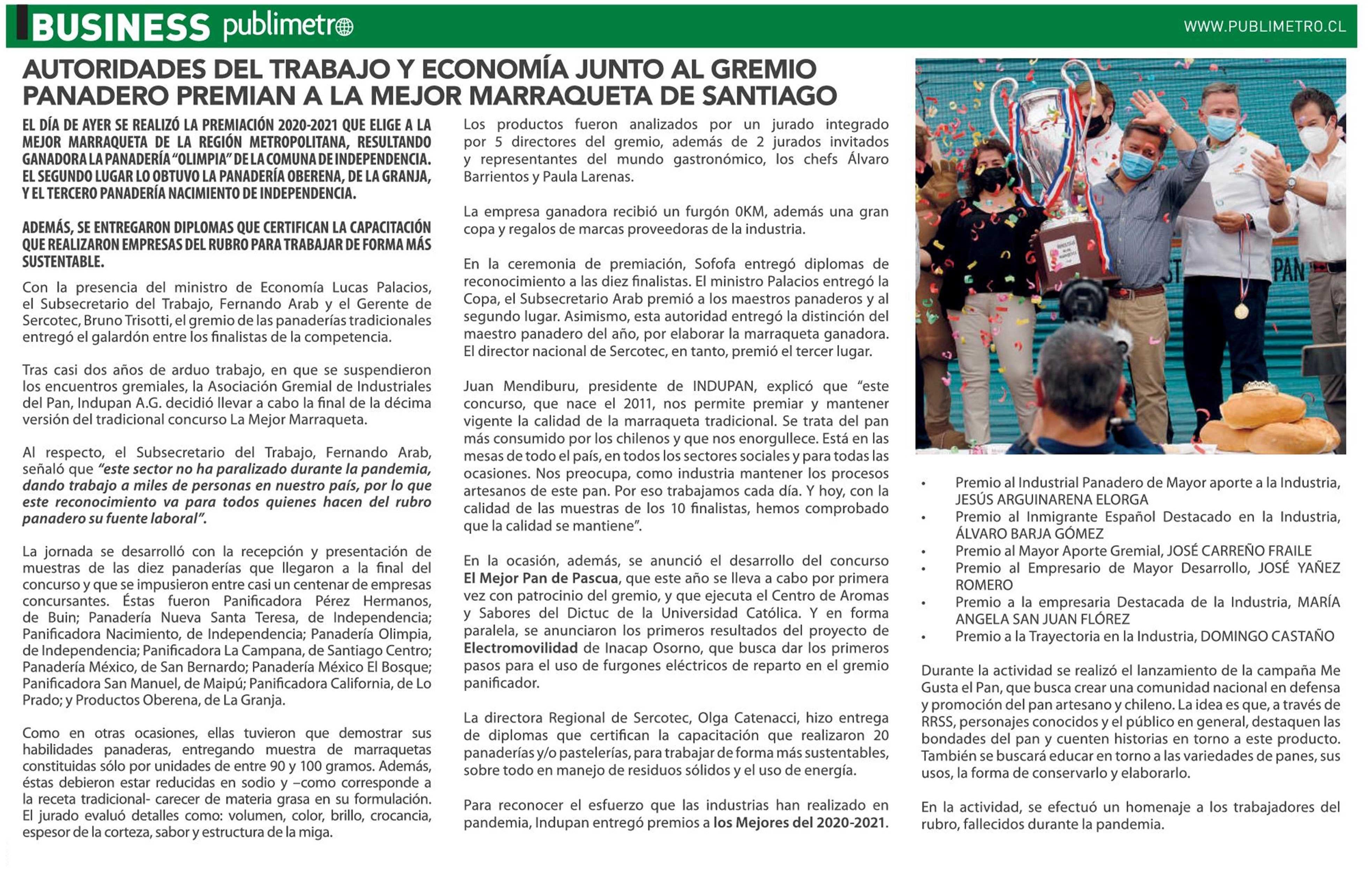 AUTORIDADES DEL TRABAJO Y ECONOMÍA JUNTO AL GREMIO PANADERO PREMIAN A LA MEJOR MARRAQUETA DE SANTIAGO