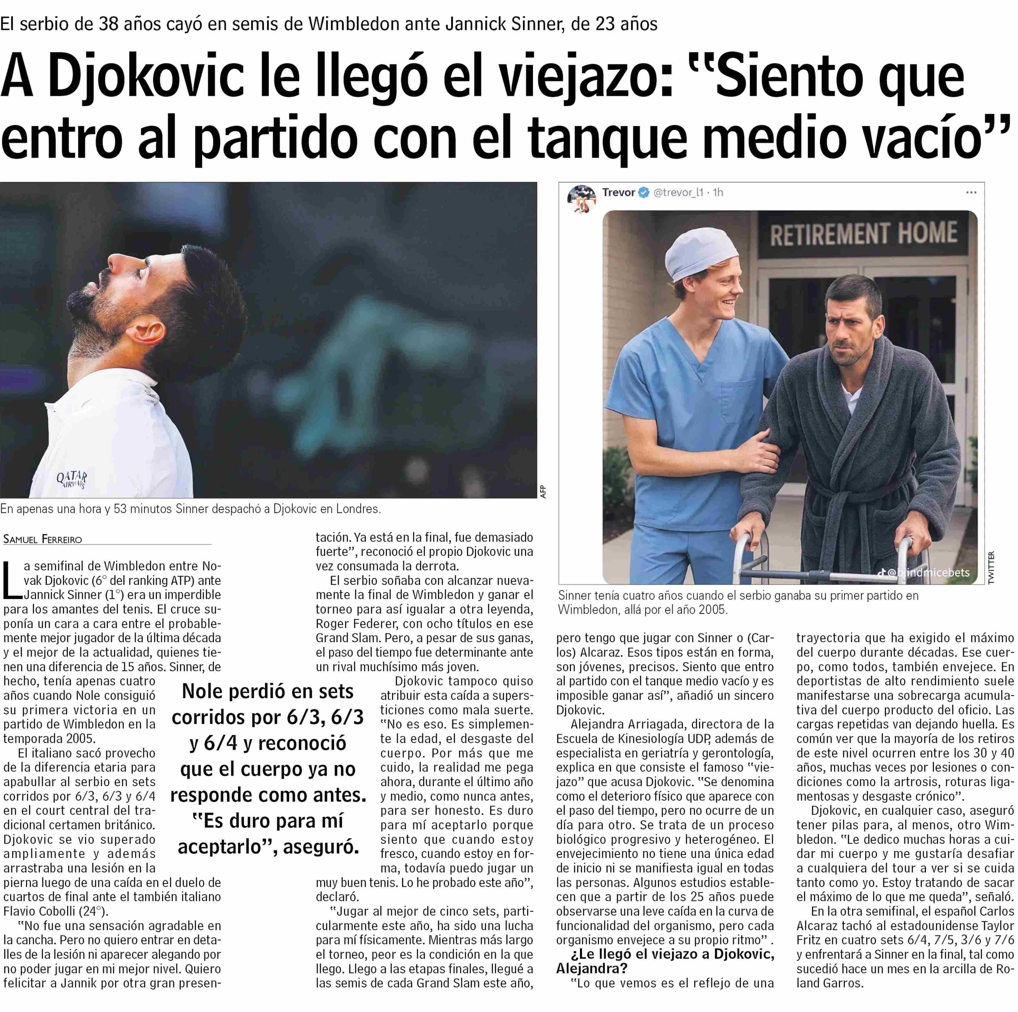 A Djokovic le llegó el viejazo: "Siento que entro al partido con el tanque medio vacio"