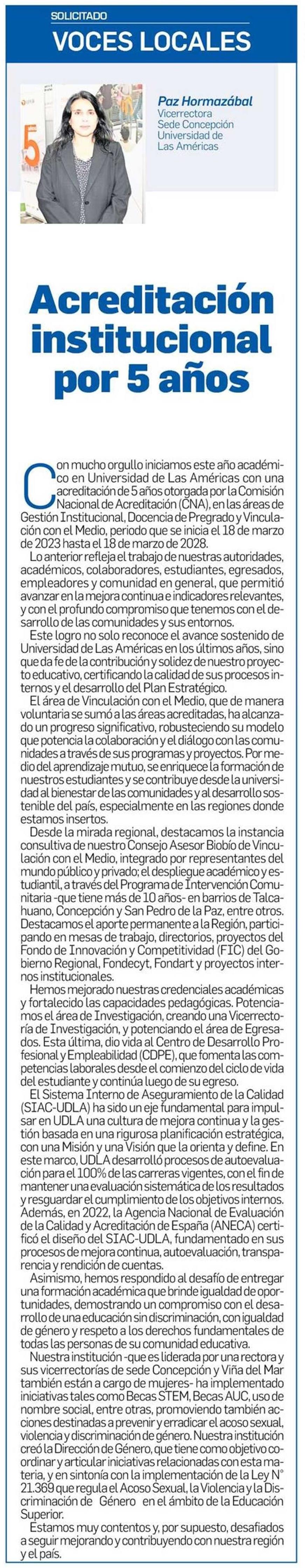 Acreditación institucional por 5 años