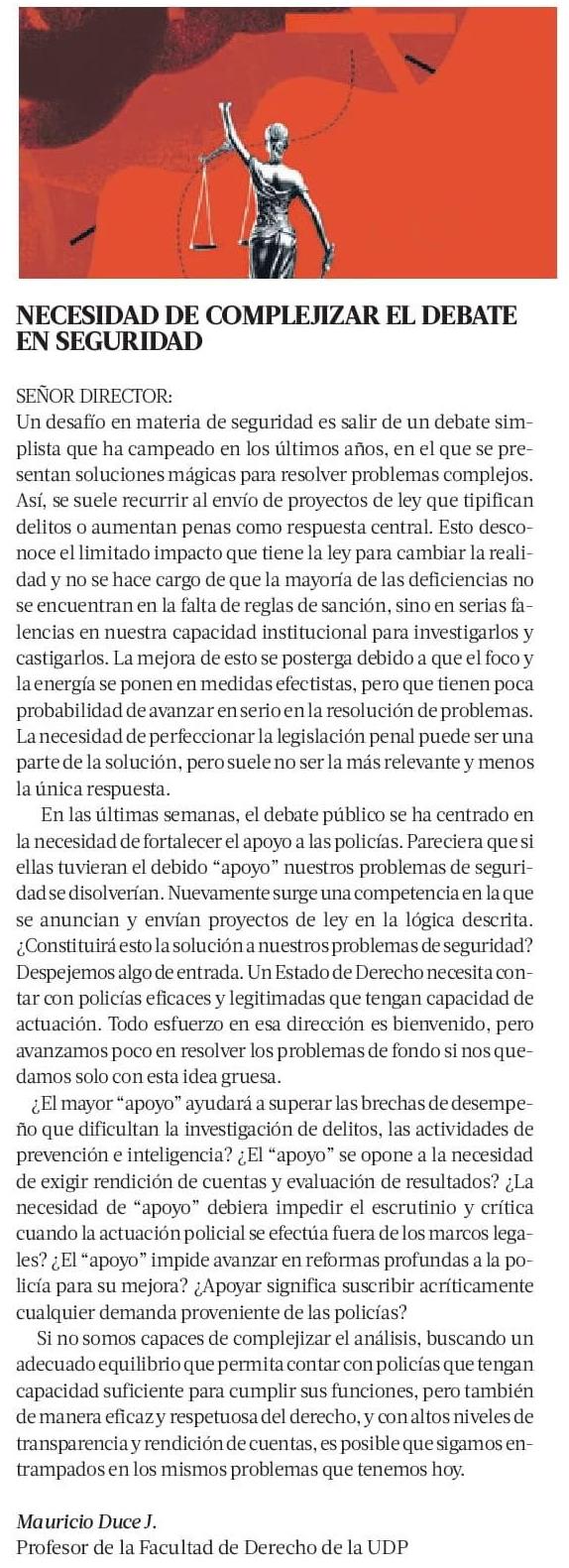 NECESIDAD DE COMPLEJIZAR EL DEBATE EN SEGURIDAD