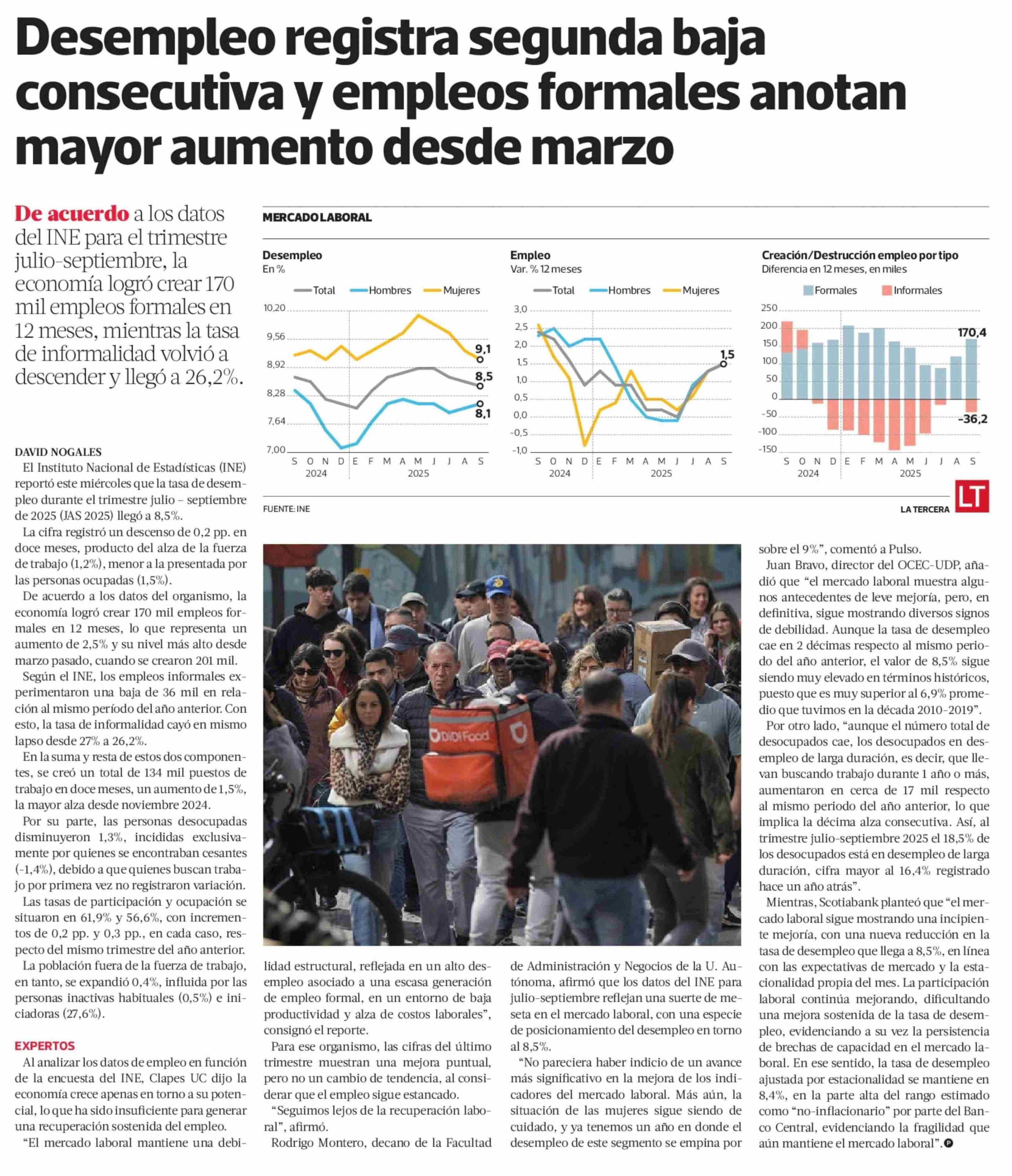 Desempleo registra segunda baja consecutiva y empleos formales anotan mayor aumento desde marzo
