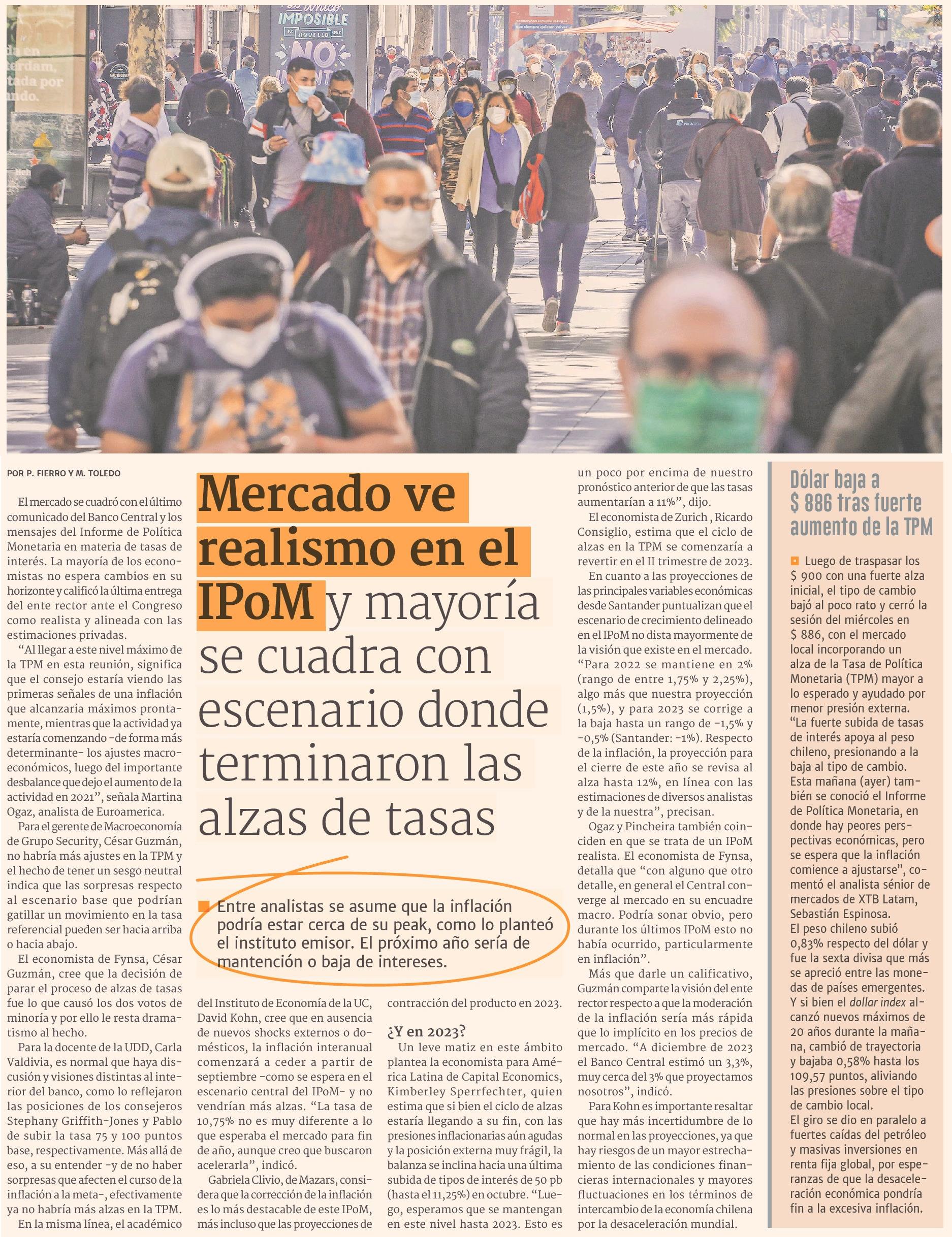 Mercado ve realismo en el IPOM'y mayoria se cuadra con escenario donde terminaron las alzas de tasas