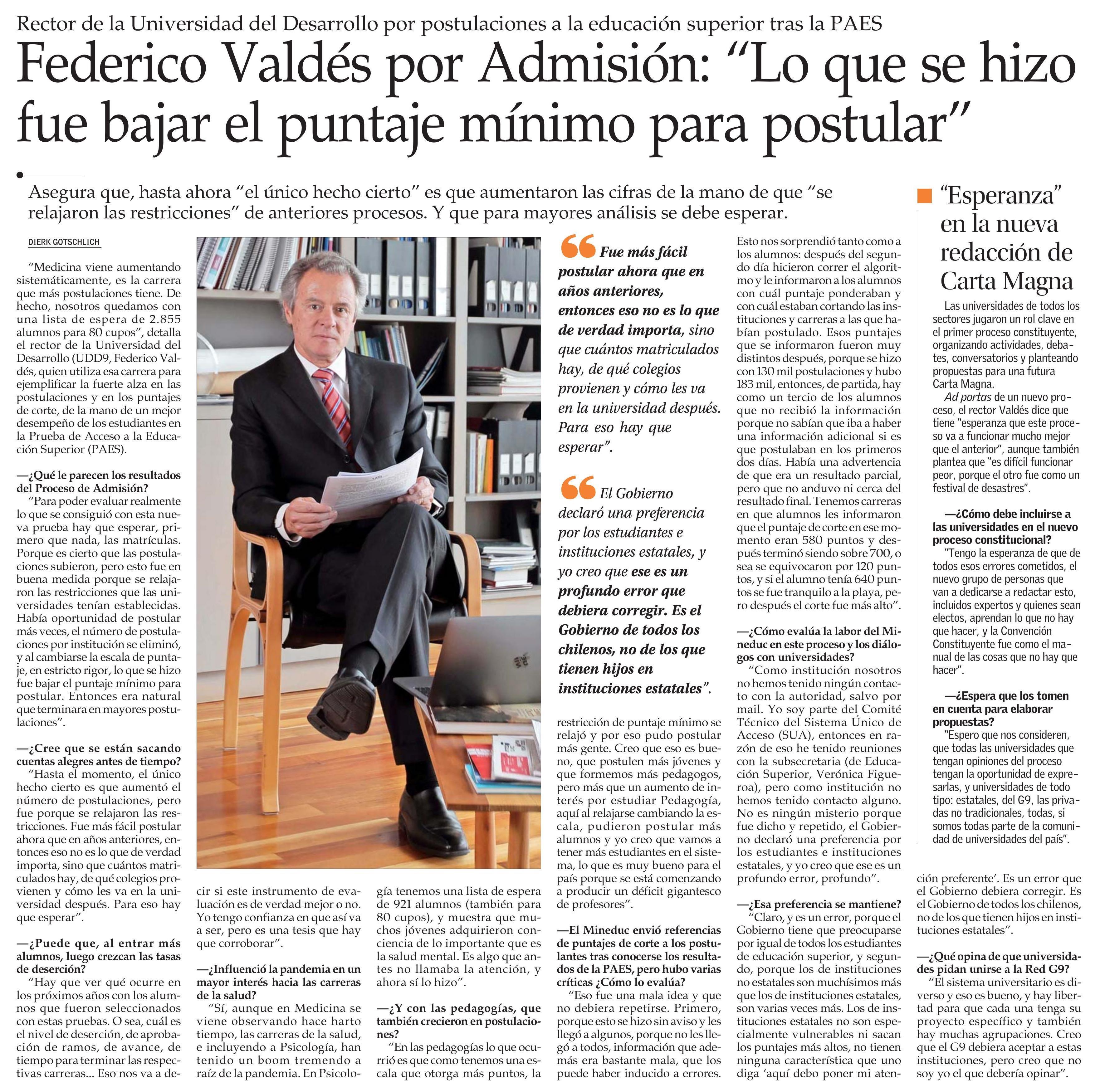 Federico Valdés por Admisión: “Lo que se hizo fue bajar el puntaje mínimo para postular”