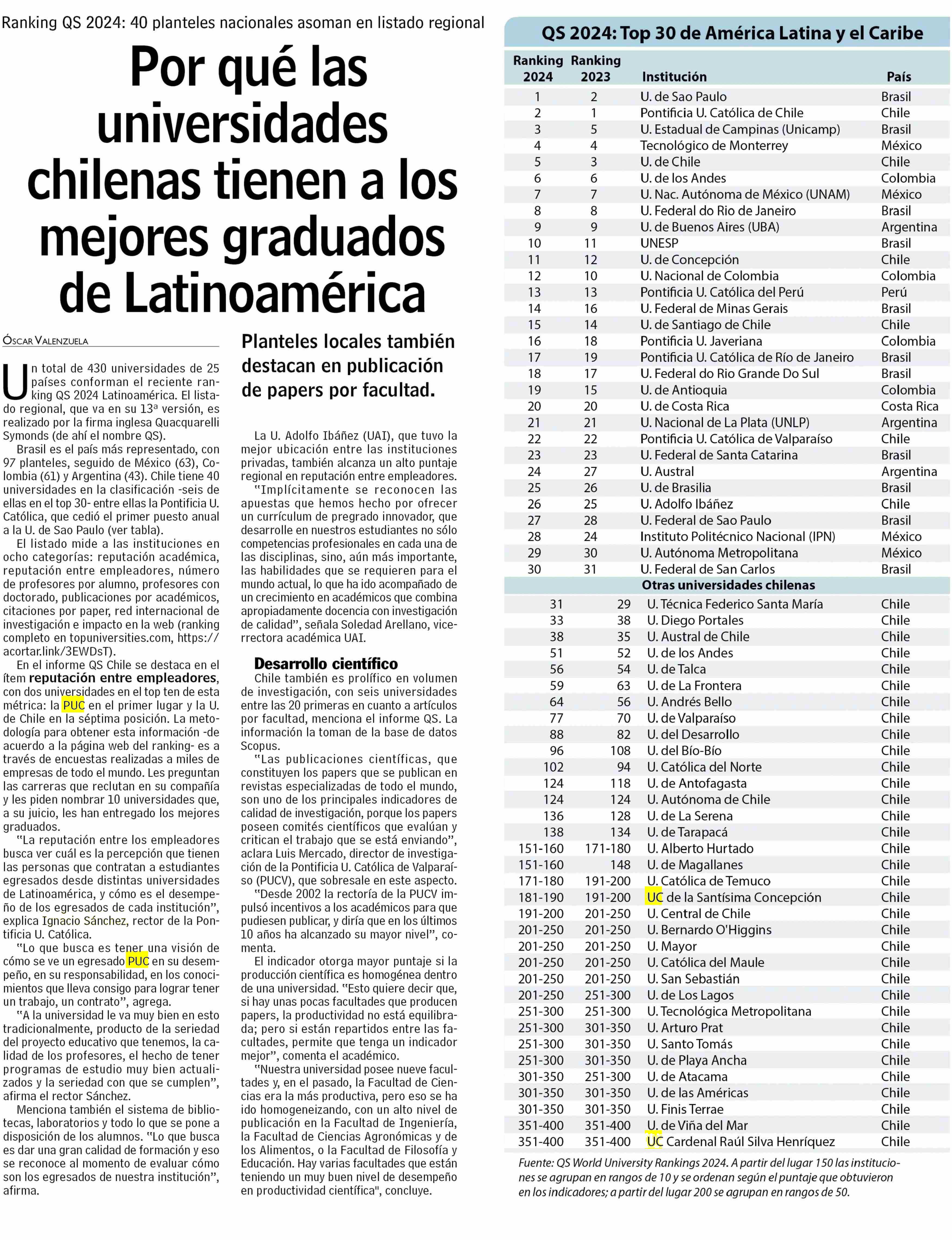 Por qué las universidades chilenas tienen a los mejores graduados de Latinoamérica