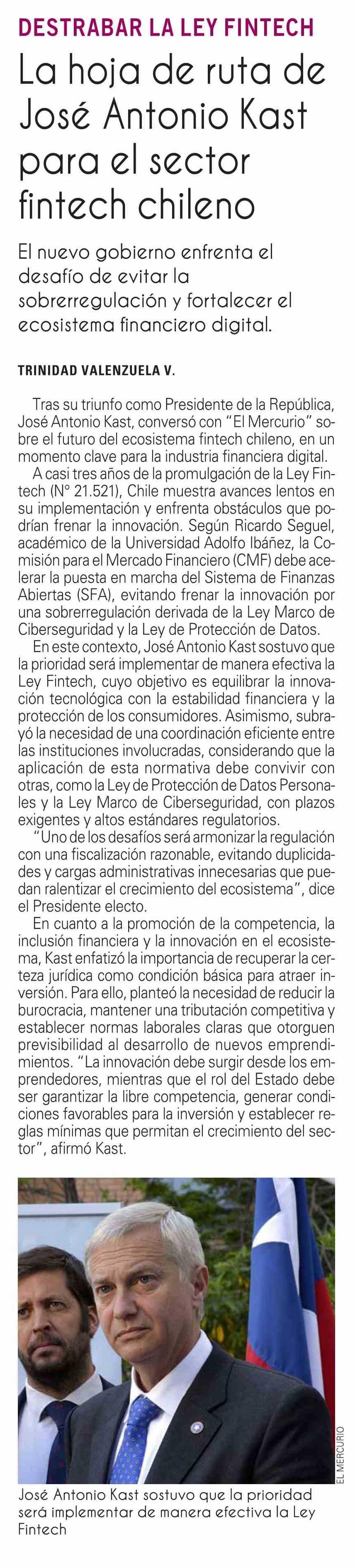 La hoja de ruta de José Antonio Kast para el sector fintech chileno