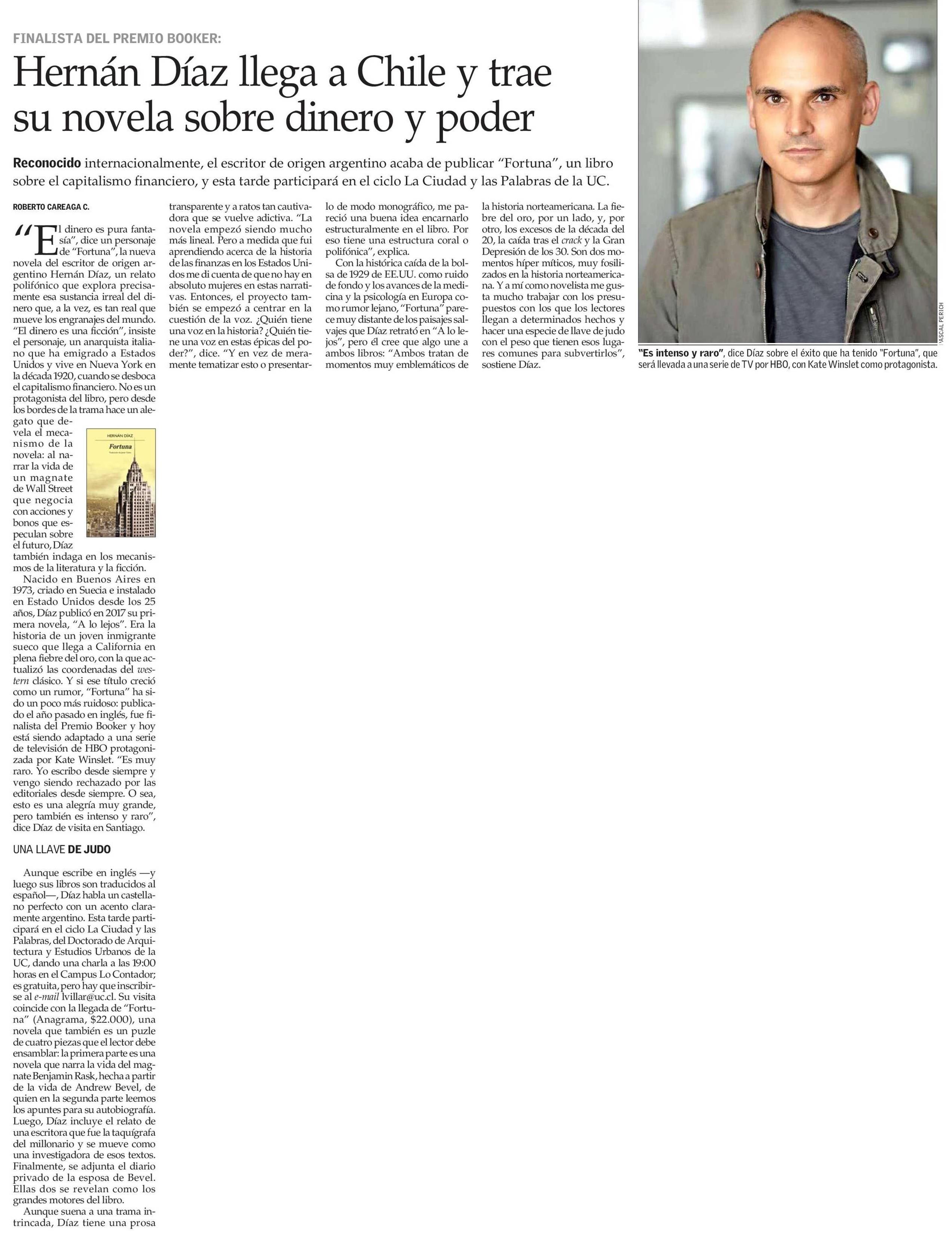 Hernán Díaz llega a Chile y trae su novela sobre dinero y poder