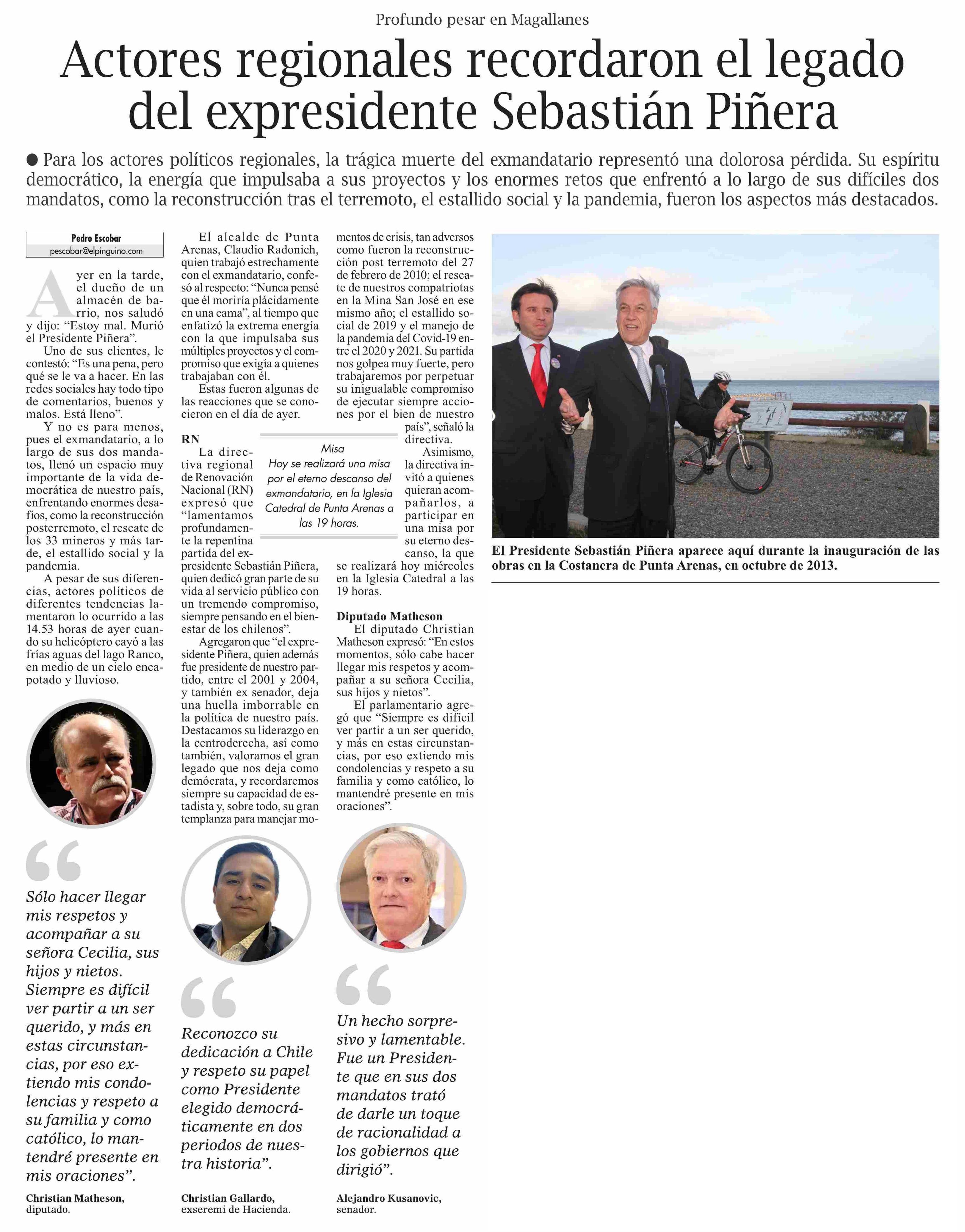 Actores regionales recordaron el legado del expresidente Sebastián Piñera