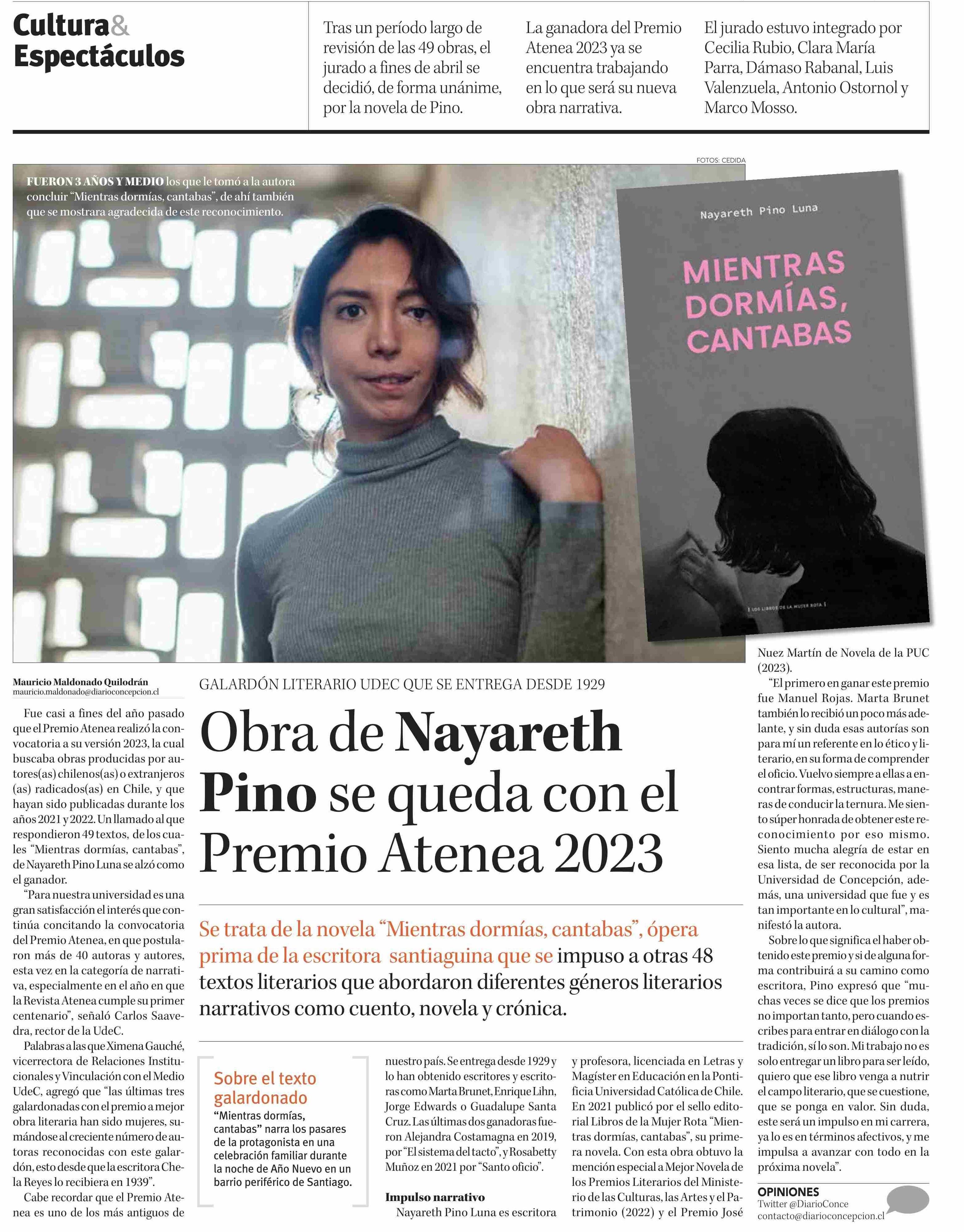 Obra de Nayareth Pino se queda con el Premio Atenea 2023