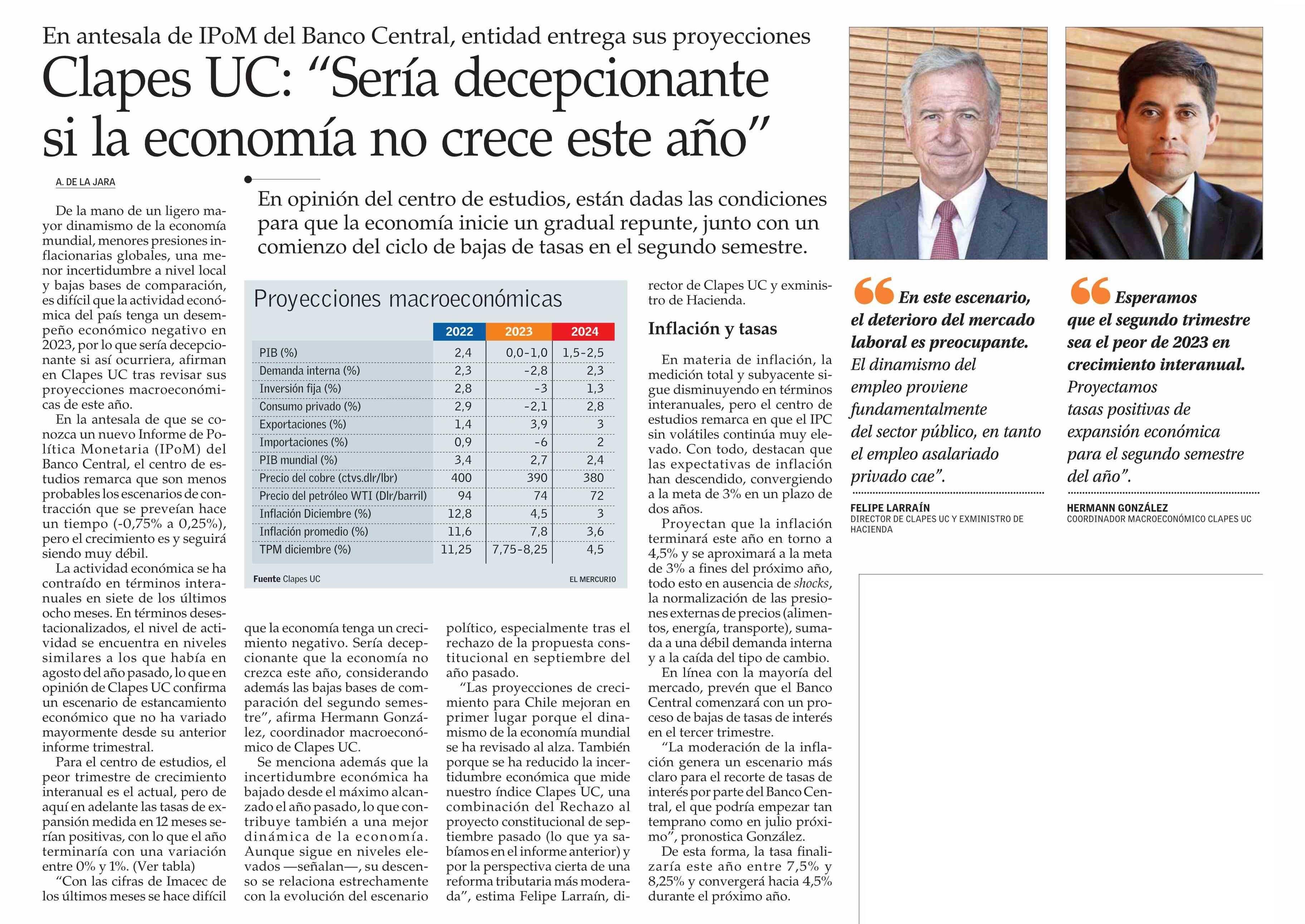 Clapes UC: "Sería decepcionante si la economía no crece este año"