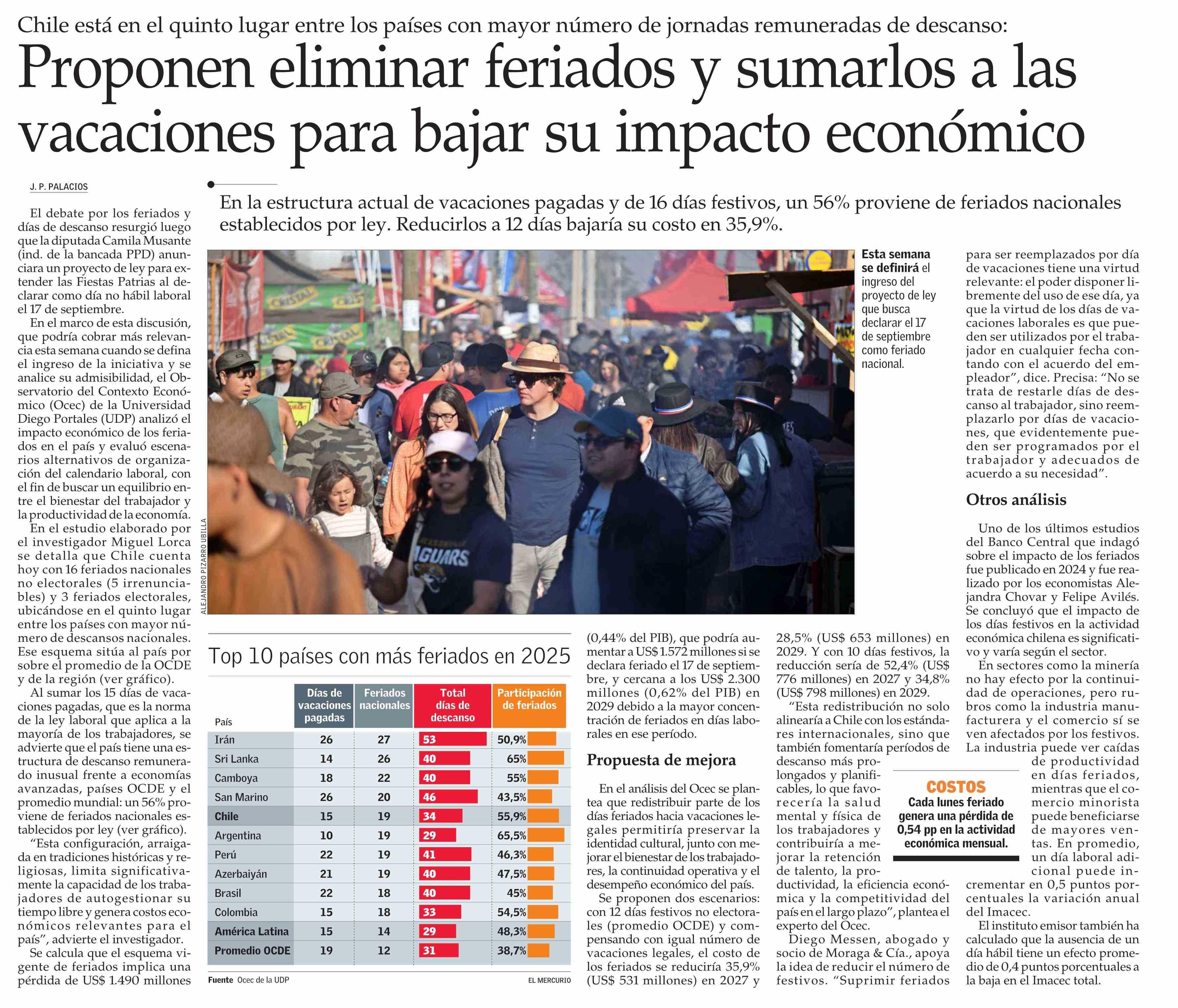 Proponen eliminar feriados y sumarlos a las vacaciones para bajar su impacto económico
