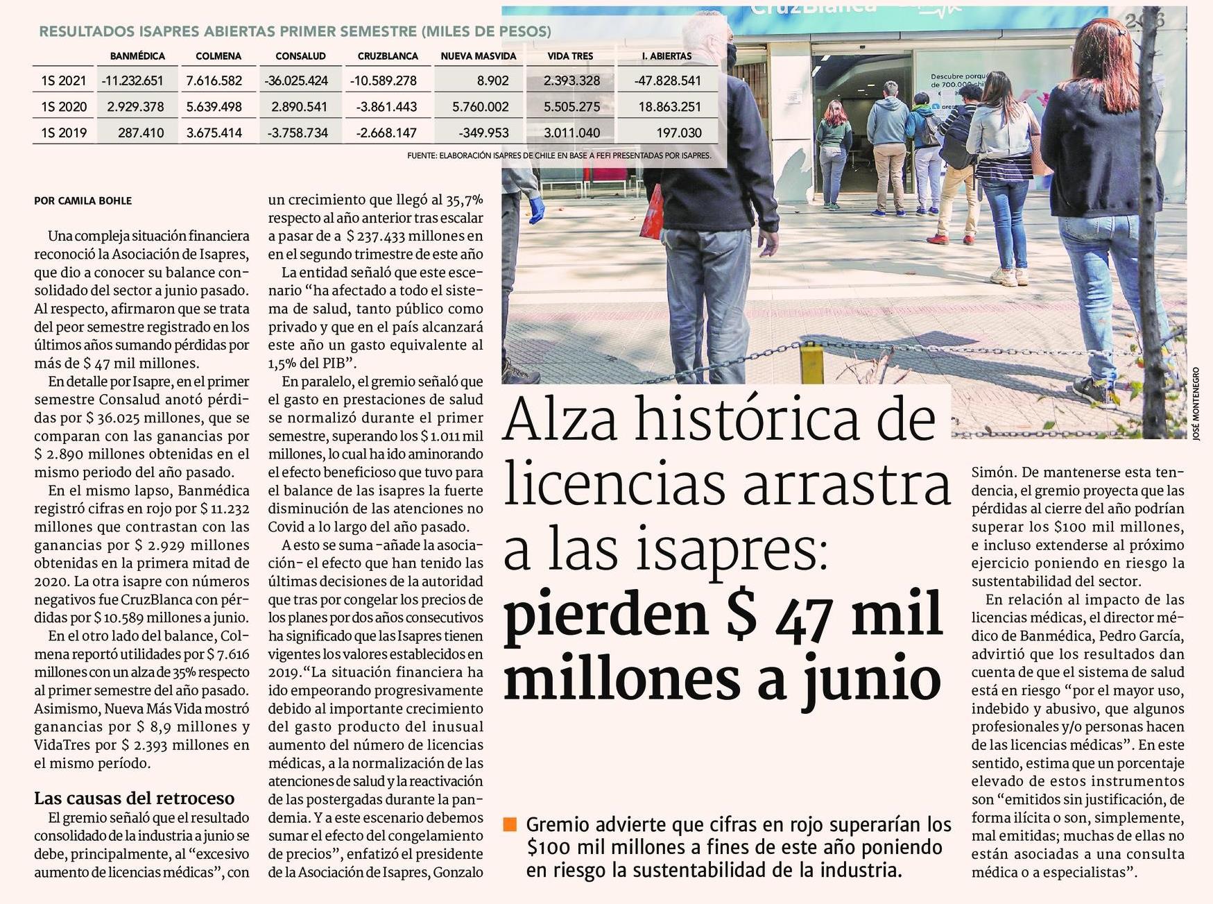 Alza histórica de licencias arrastra a las isapres: pierden $ 47 mil millones a junio