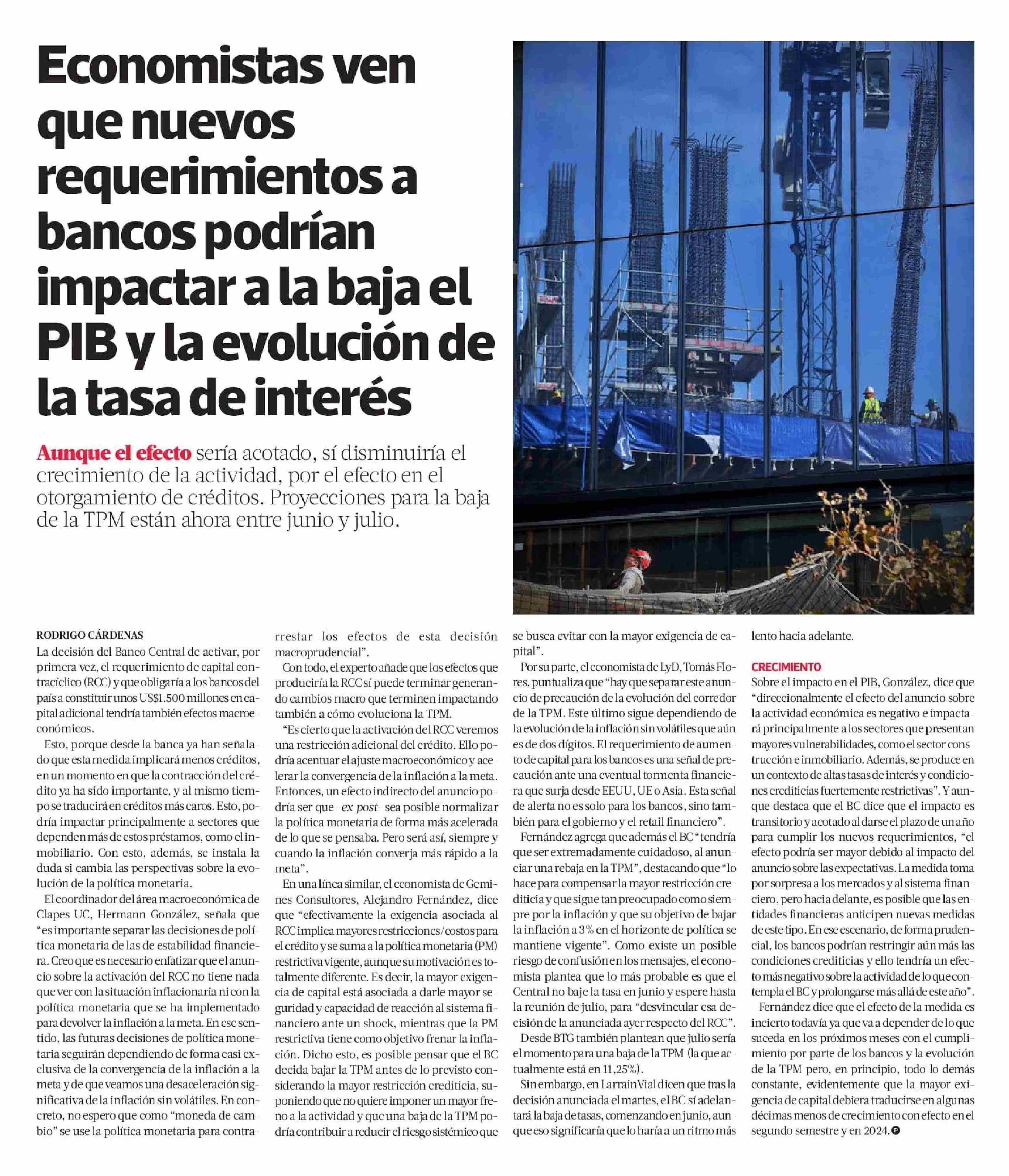Economistas ven que nuevos requerimientos a bancos podrían impactar a la baja el PIB y la evolución de la tasa de interés