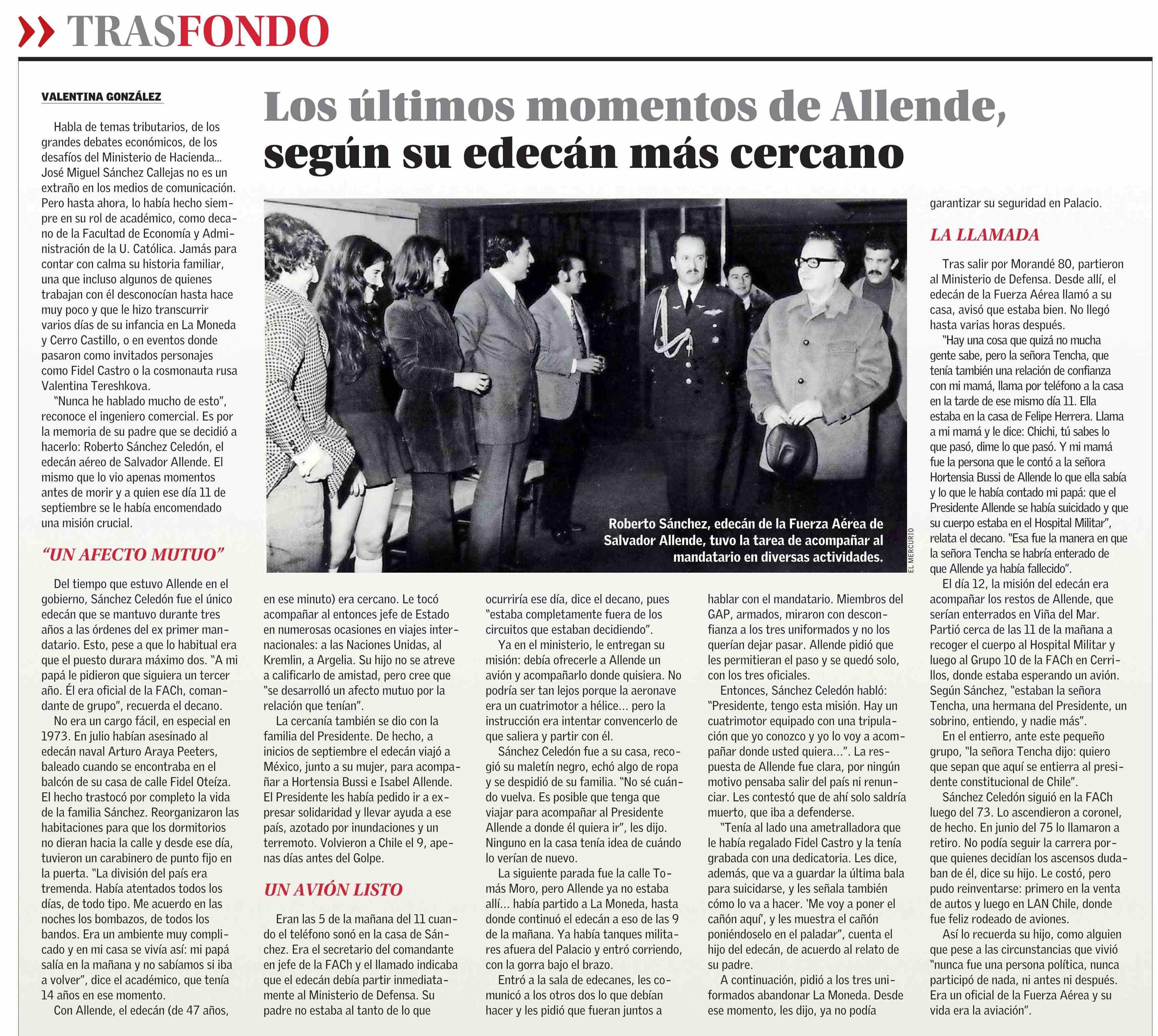 Los últimos momentos de Allende, según su edecán más cercano