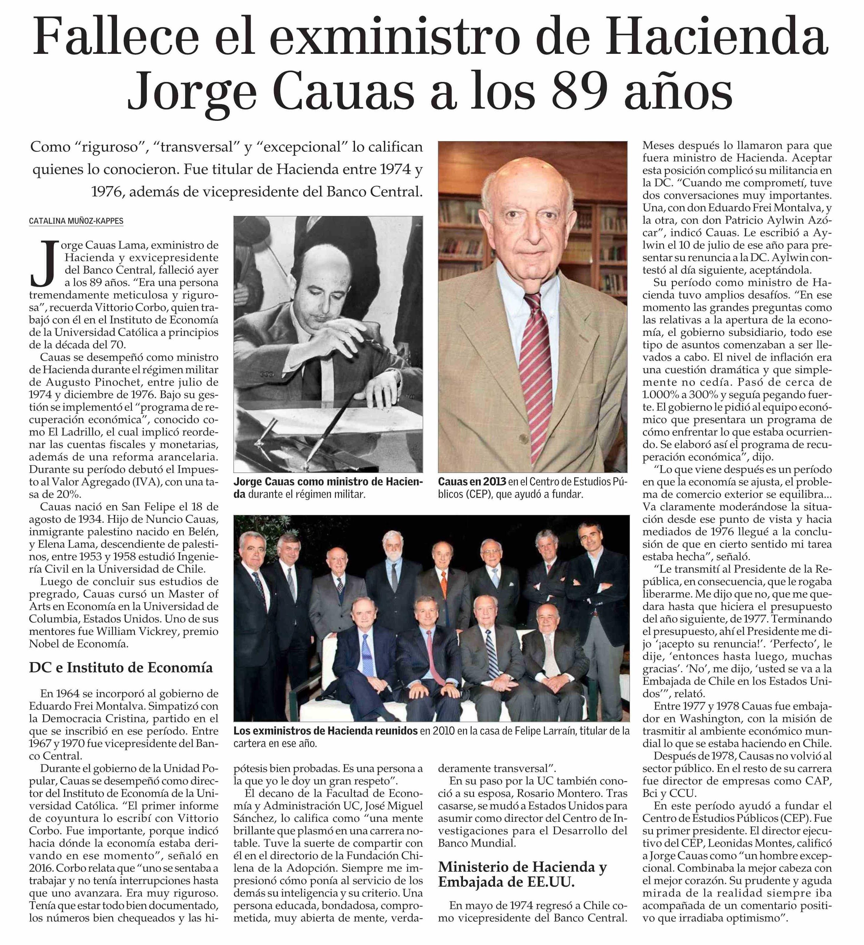 Fallece el exministro de Hacienda Jorge Cauas a los 89 años