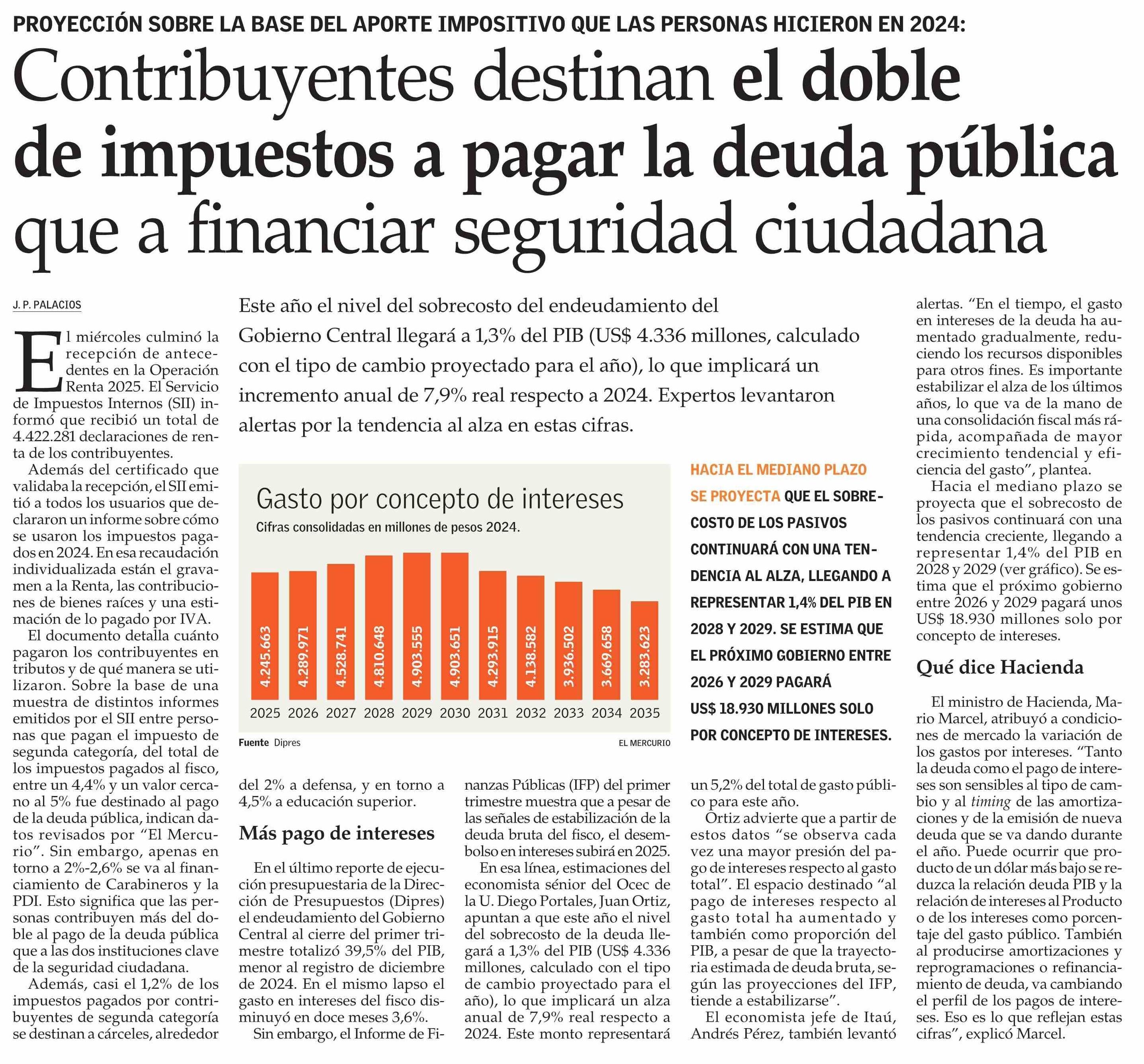 Contribuyentes destinan el doble de impuestos a pagar la deuda pública que a financiar seguridad ciudadana