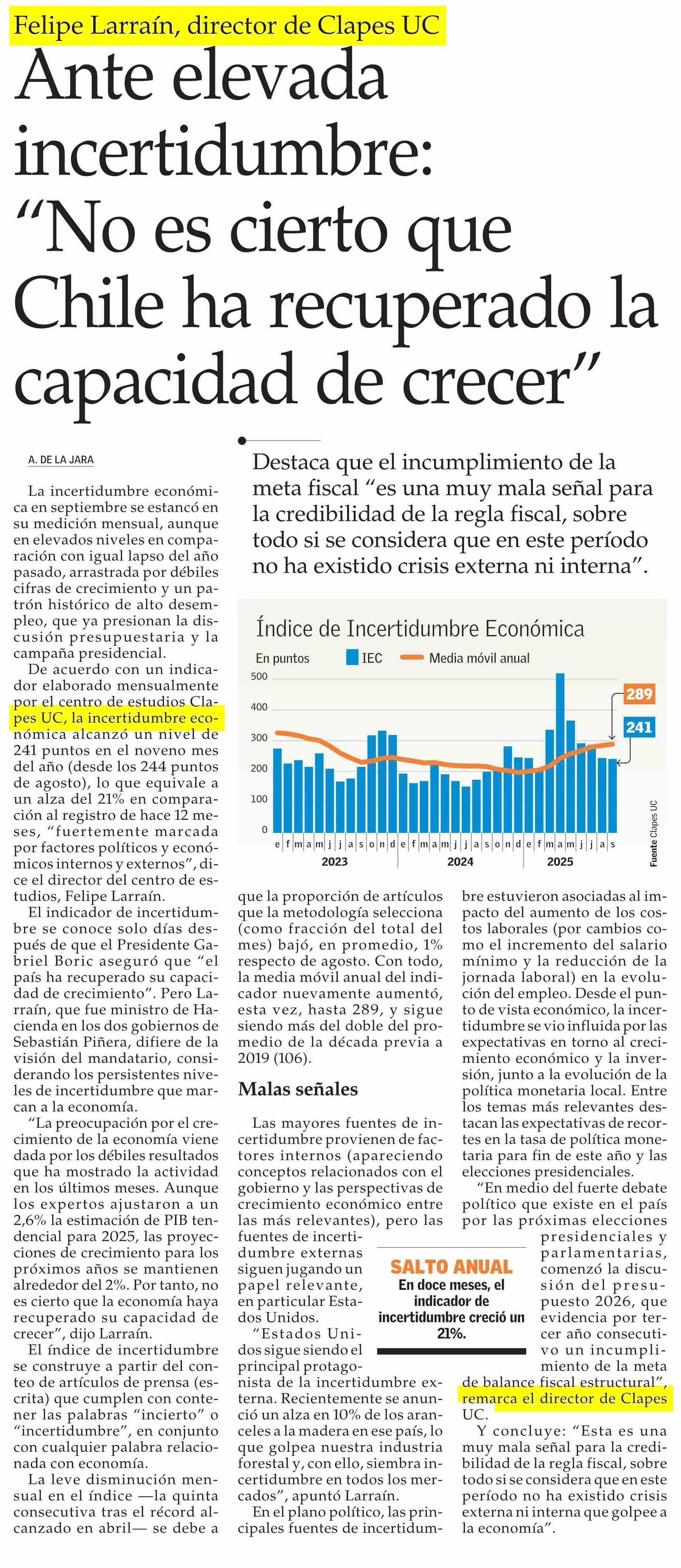 Ante elevada incertidumbre: “No es cierto que Chile ha recuperado la capacidad de crecer”