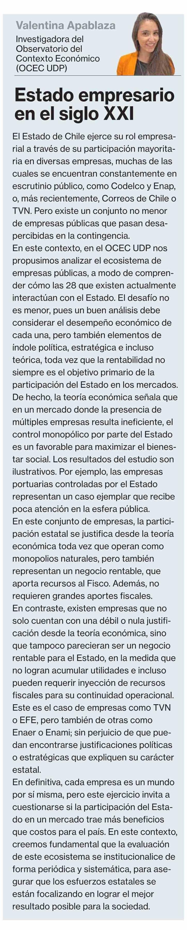 Columnas de Opinión: Estado empresario en el siglo XXI
