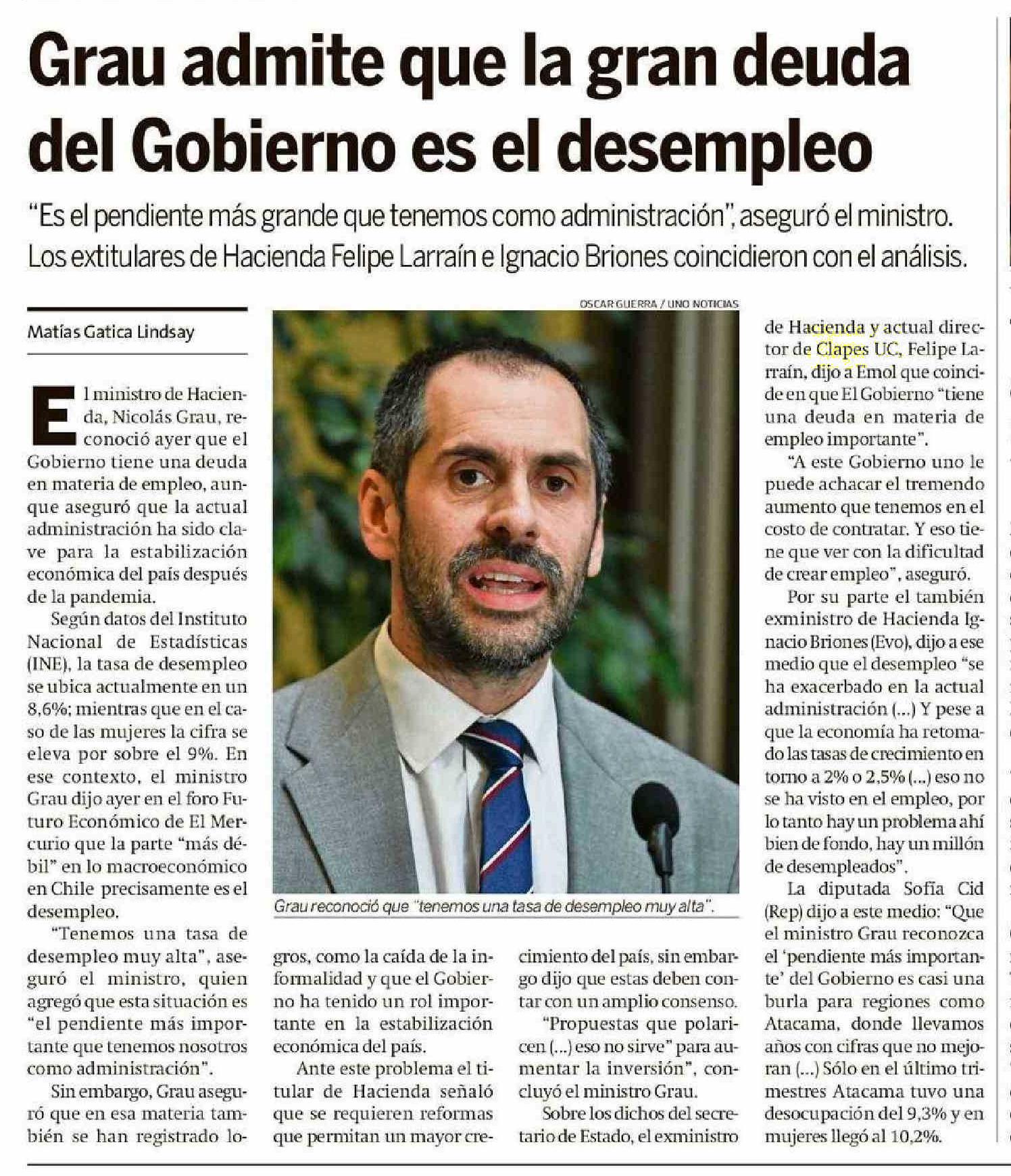 Grau admite que la gran deuda del Gobierno es el desempleo