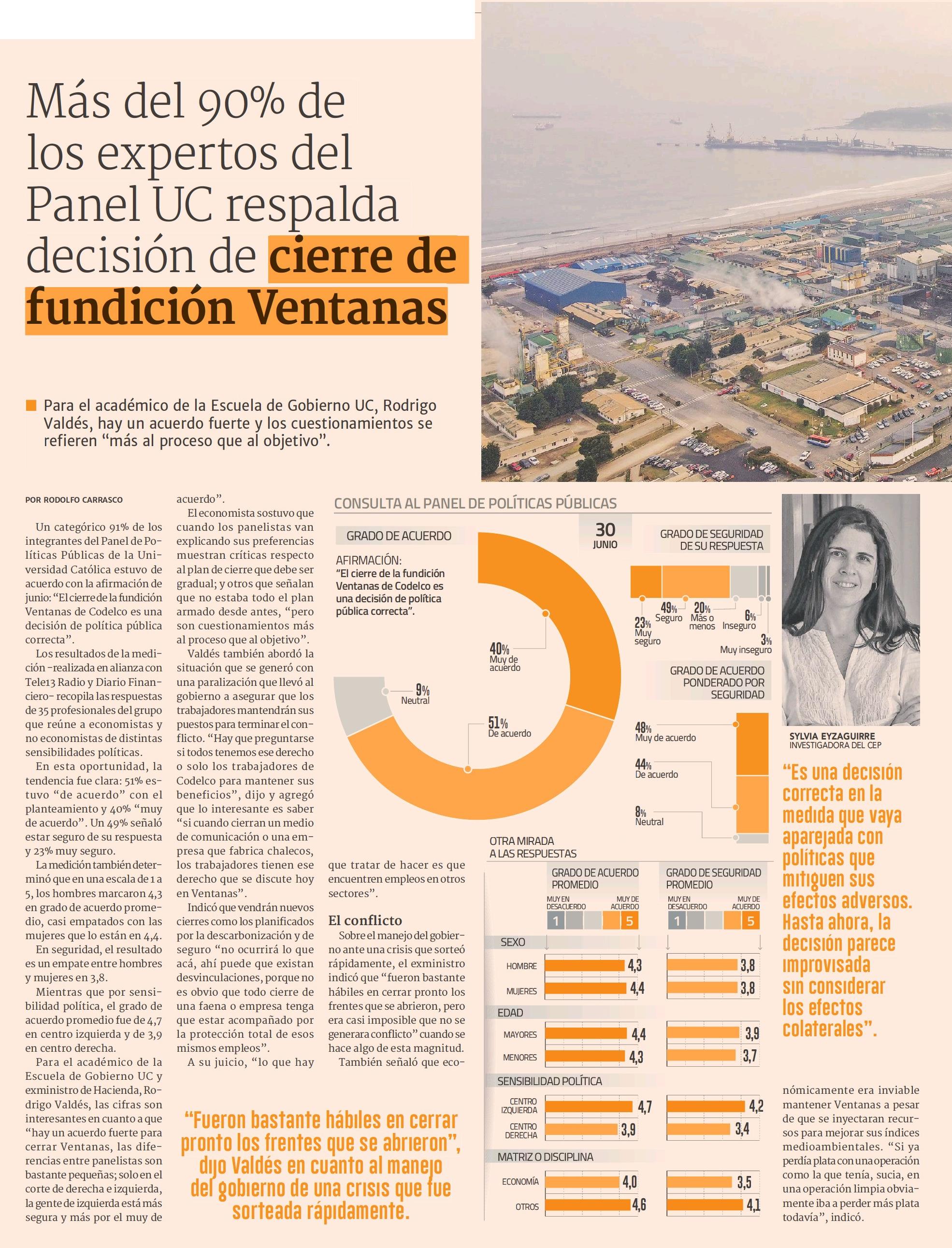 Más del 90% de los expertos del Panel UC respalda decisión de cierre de fundición Ventanas