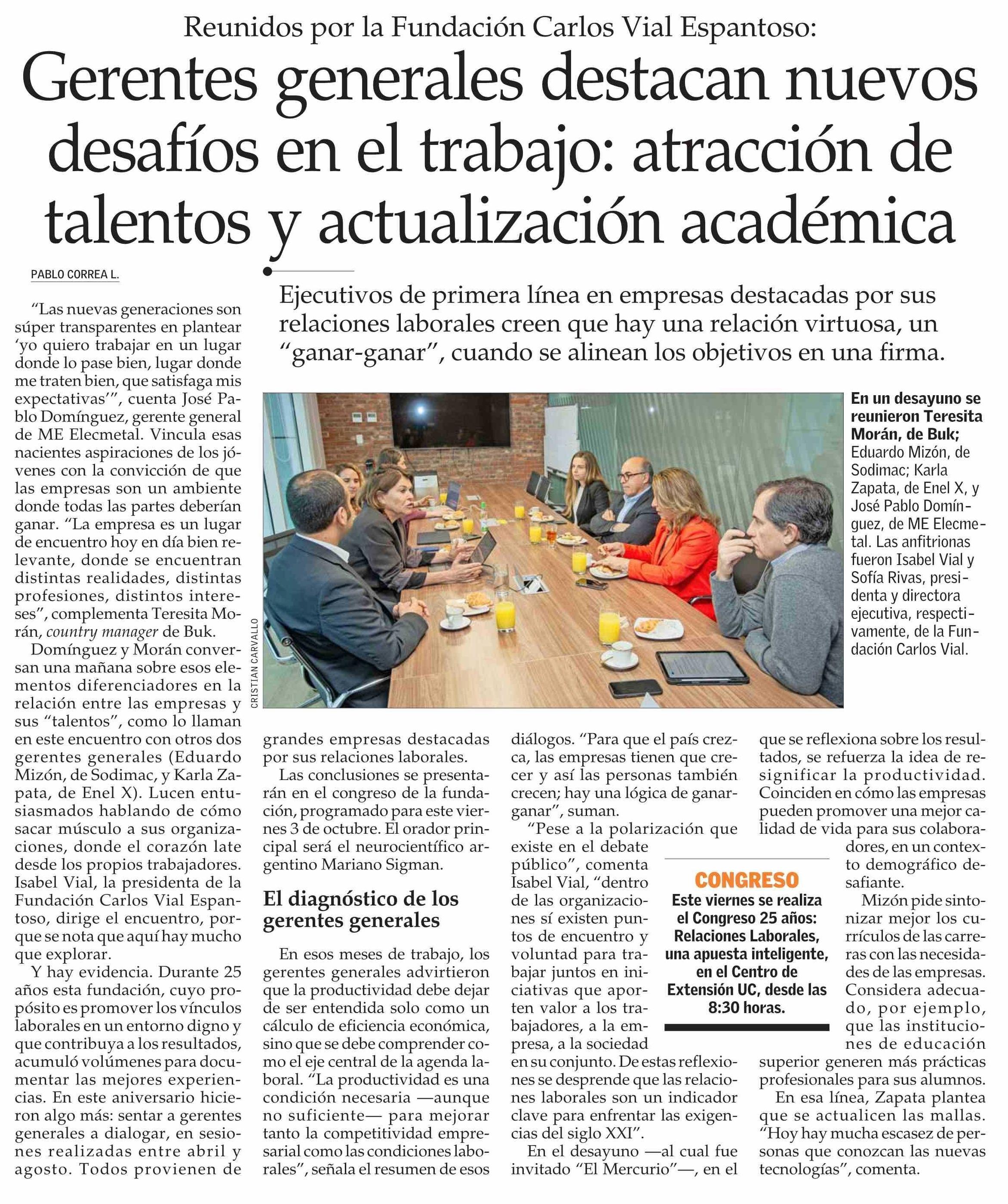 Gerentes generales destacan nuevos desafíos en el trabajo: atracción de talentos y actualización académica