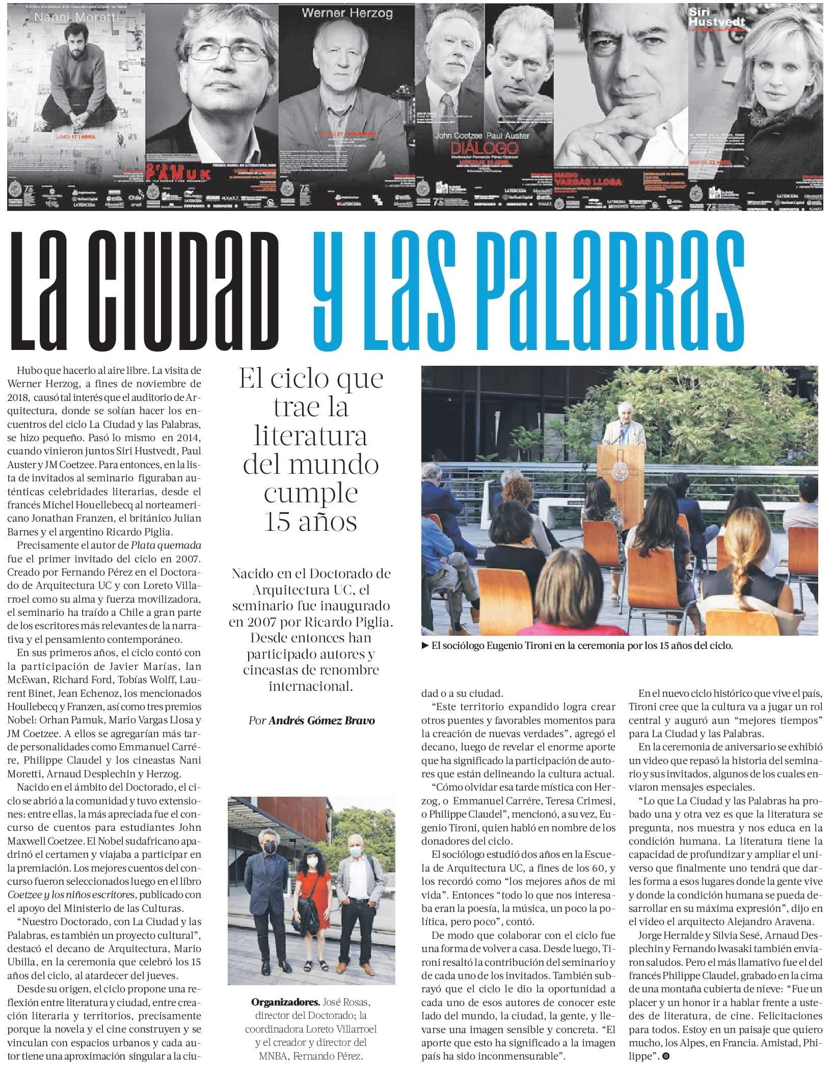 LA CIUDAD Y LAS PALABRAS El ciclo que trae la literatura del mundo cumple 15 años
