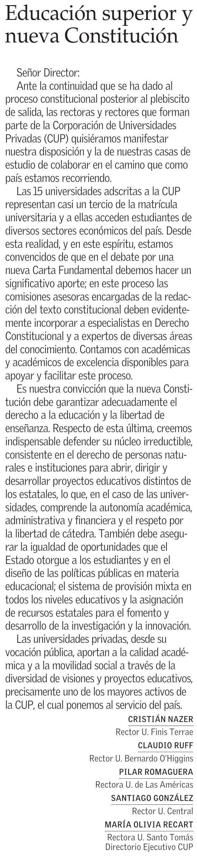 Educación superior y nueva Constitución