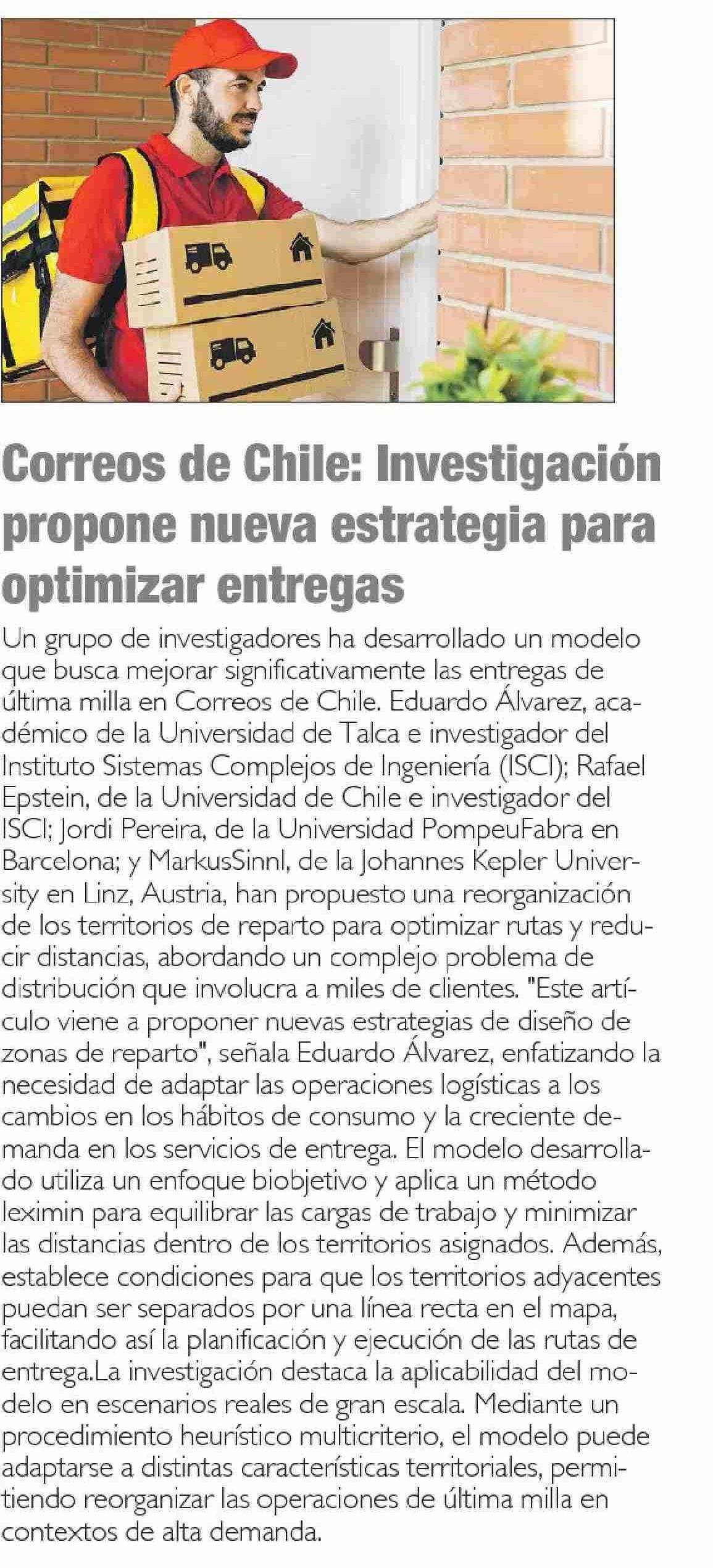 Correos de Chile: Investigación propone nueva estrategia para optimizar entregas