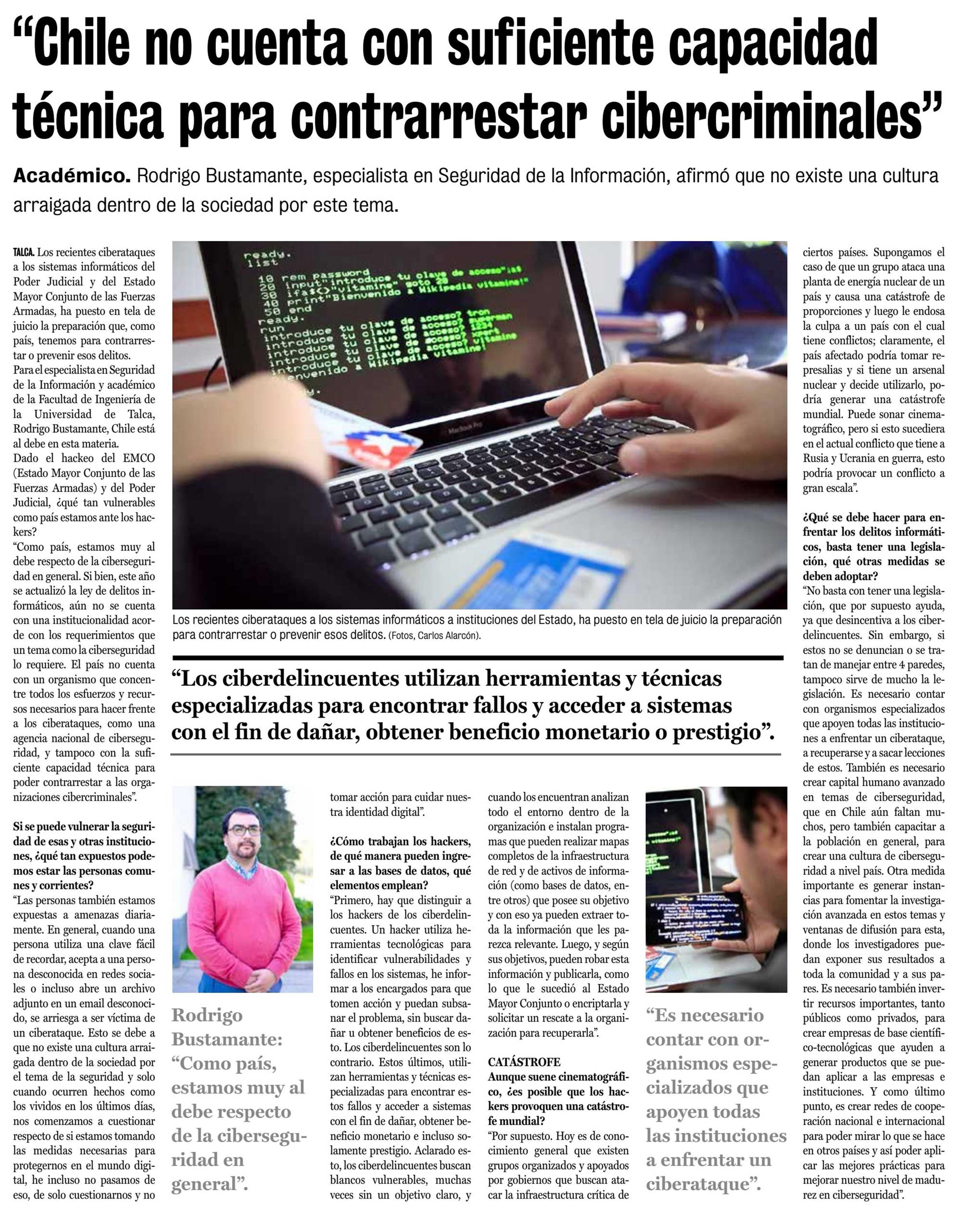 “Chile no cuenta con suficiente capacidad técnica para contrarrestar cibercriminales”