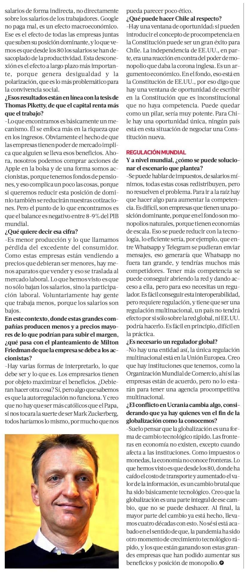 “Hay unas 400 empresas dominantes en el mundo, que tienen un efecto conjunto, que genera una reducción de los salarios”