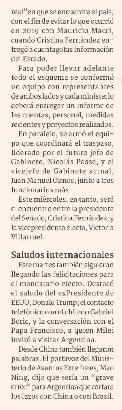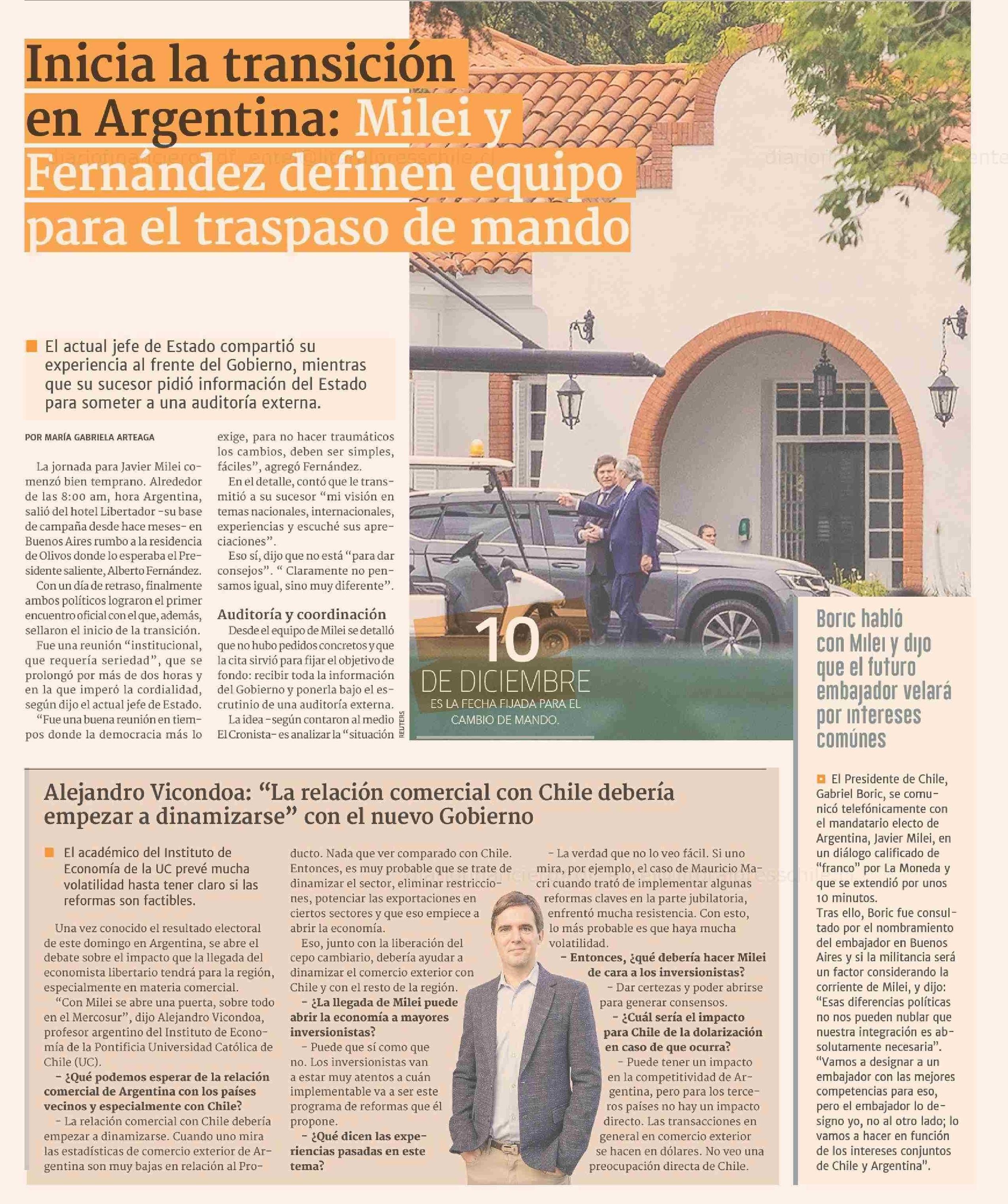 Inicia la transición en Argentina: Milei y Fernández definen equipo para el traspaso de mando