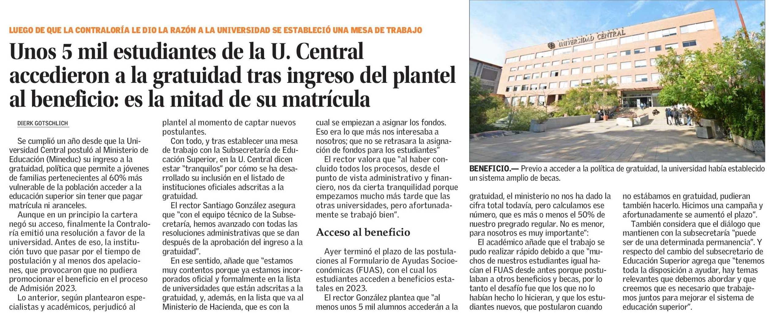 Unos 5 mil estudiantes de la U. Central accedieron a la gratuidad tras ingreso del plantel al beneficio: es la mitad de su matrícula