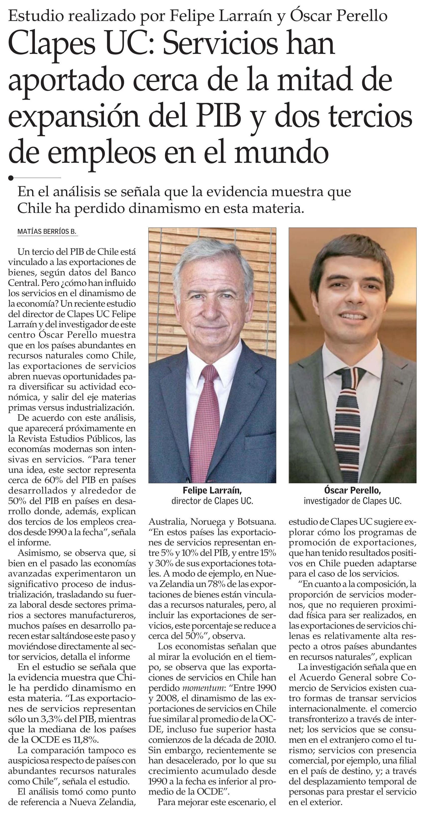 Clapes UC: Servicios han aportado cerca de la mitad de expansión del PIB y dos tercios de empleos en el mundo