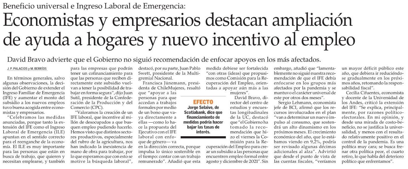 Economistas y empresarios destacan ampliación de ayuda a hogares y nuevo incentivo al empleo