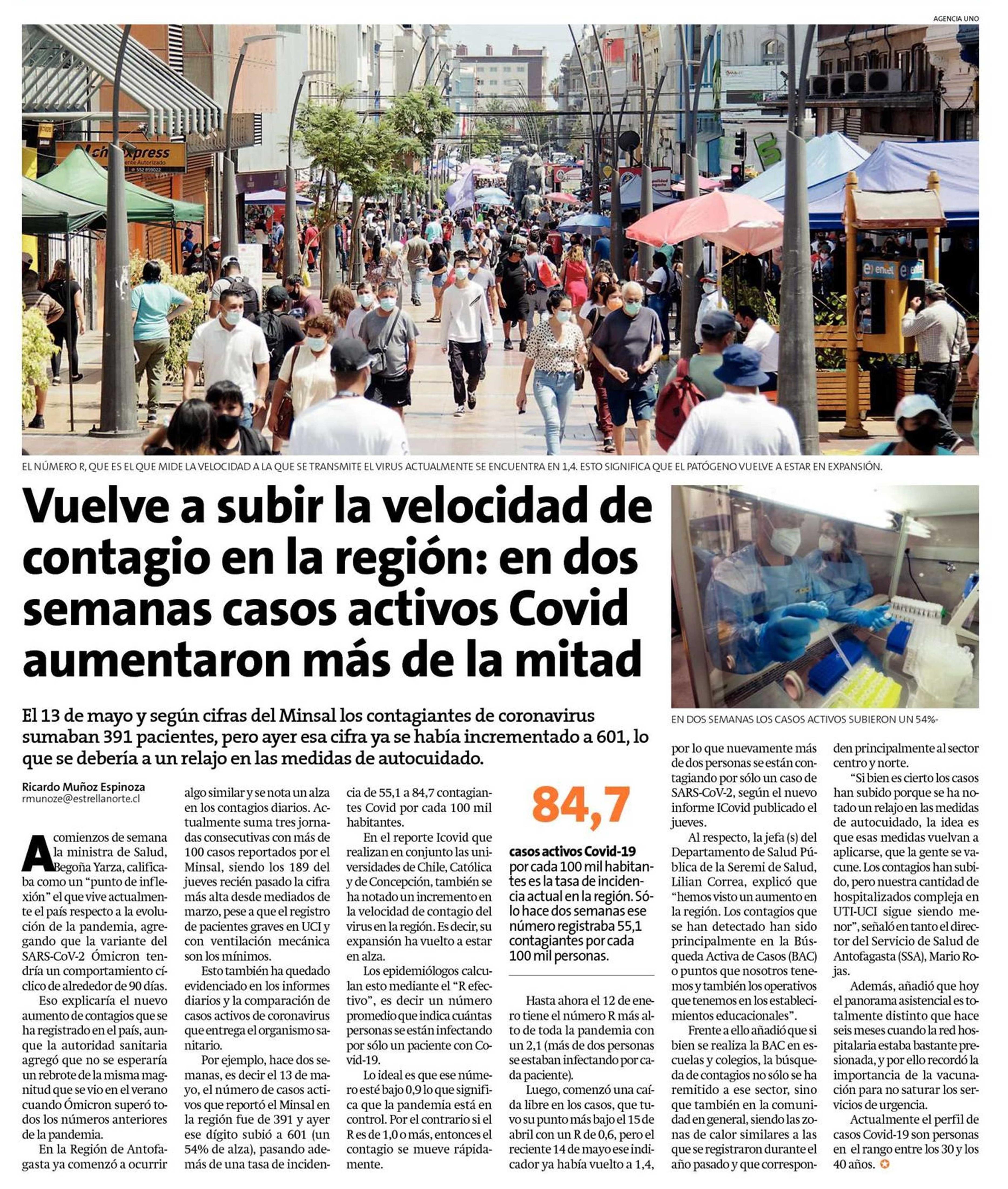 Vuelve a subir la velocidad de contagio en la región: en dos semanas casos activos Covid aumentaron más de la mitad
