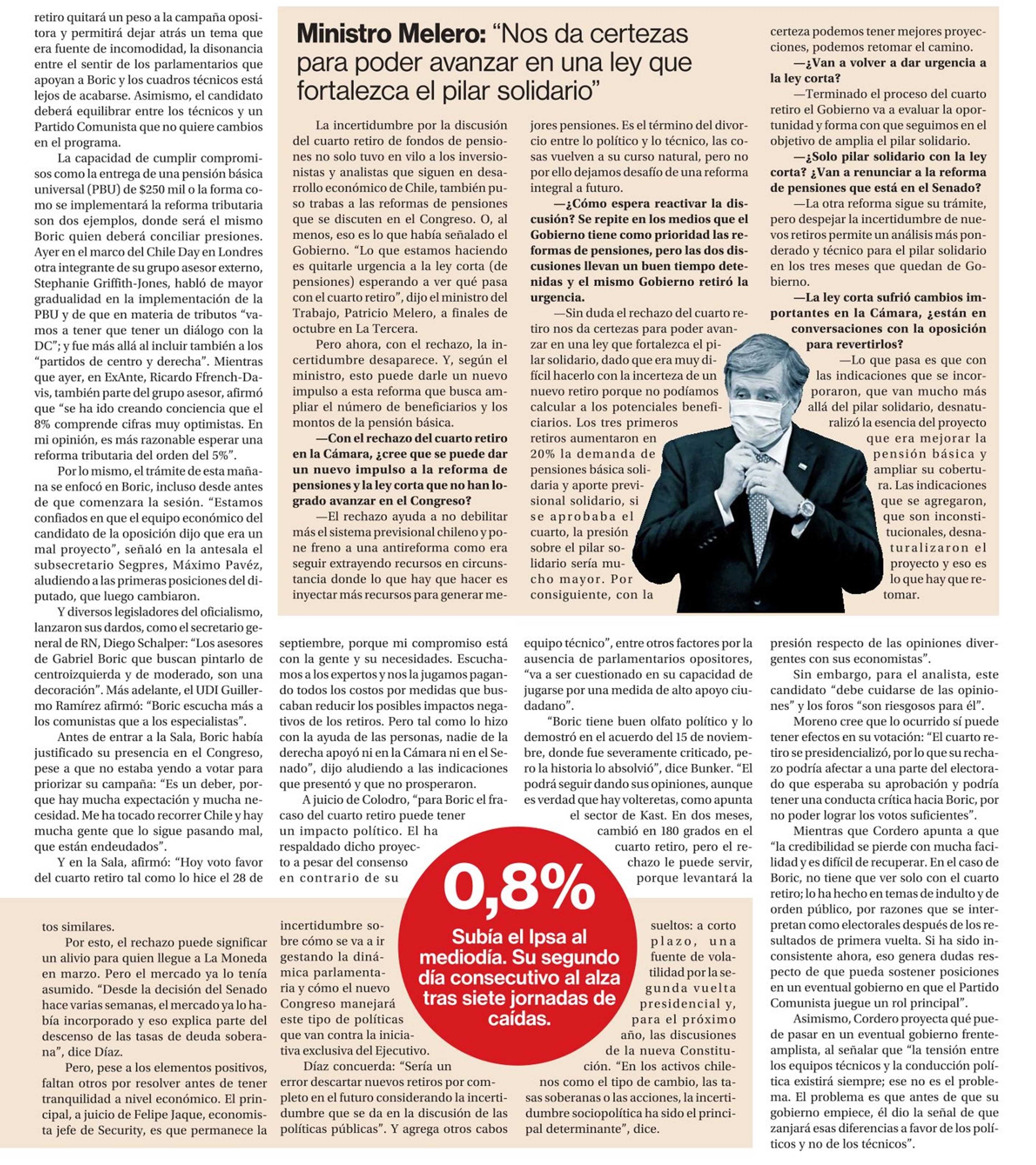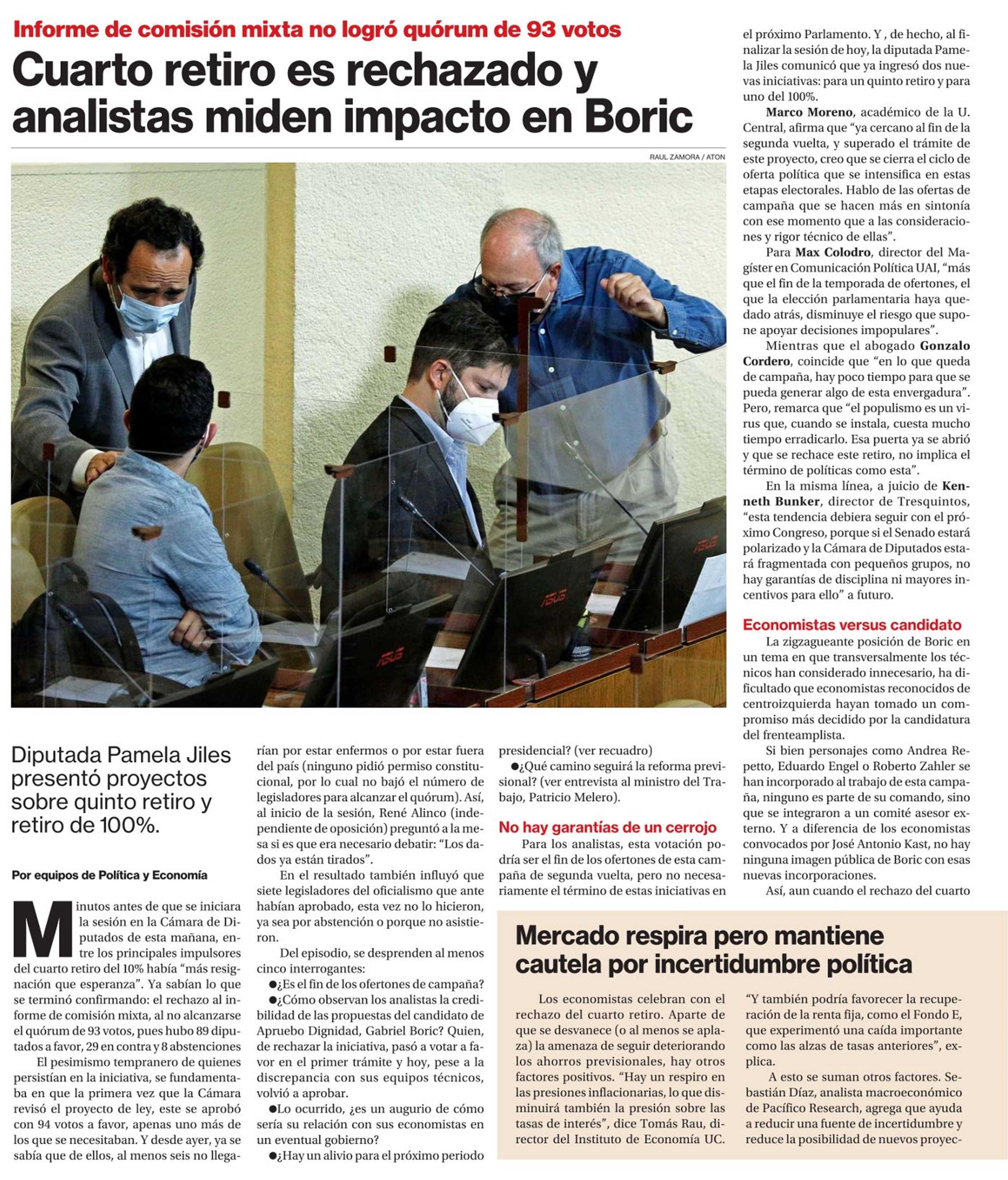 Cuarto retiro es rechazado y analistas miden impacto en Boric