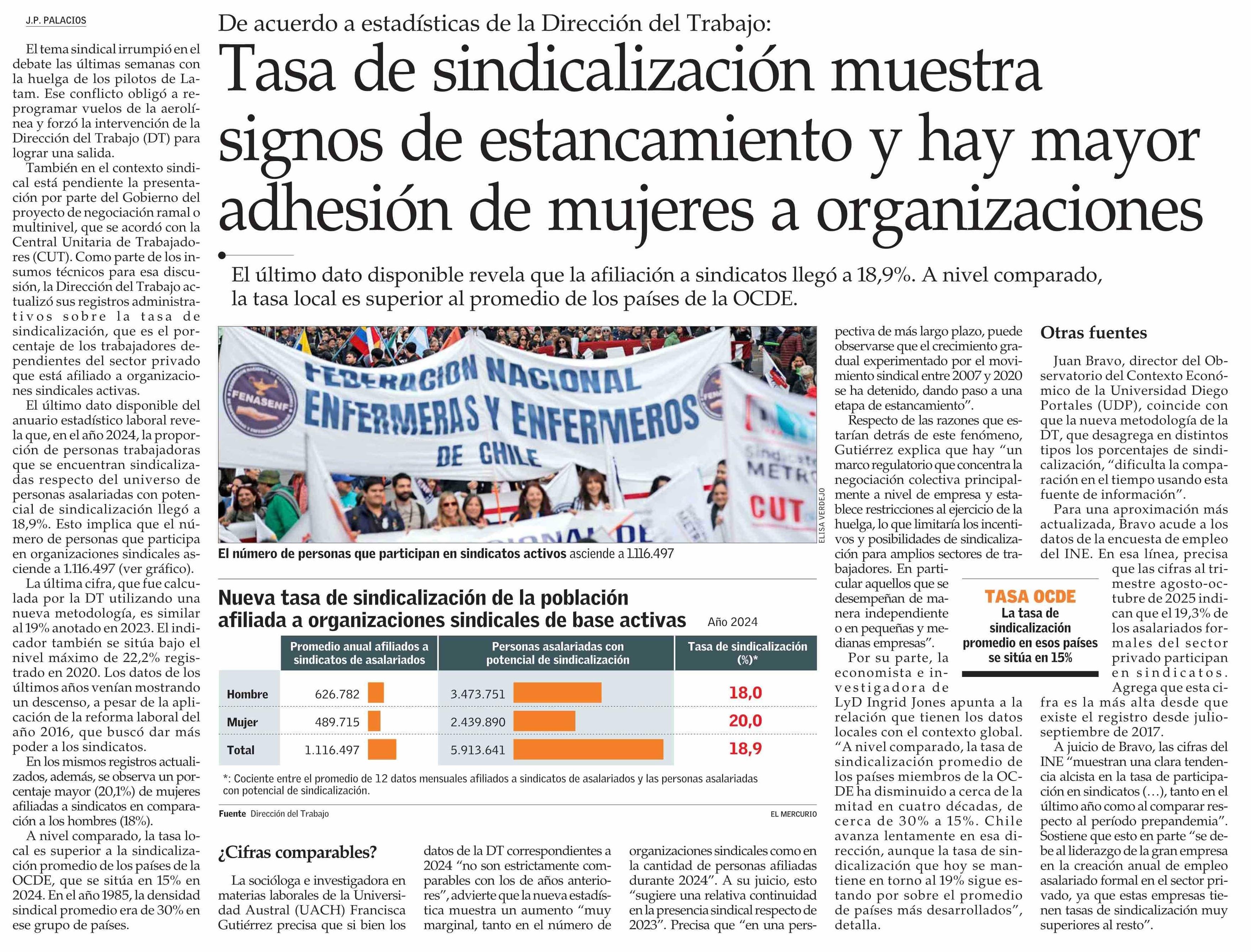 Tasa de sindicalización muestra signos de estancamiento y hay mayor adhesión de mujeres a organizaciones