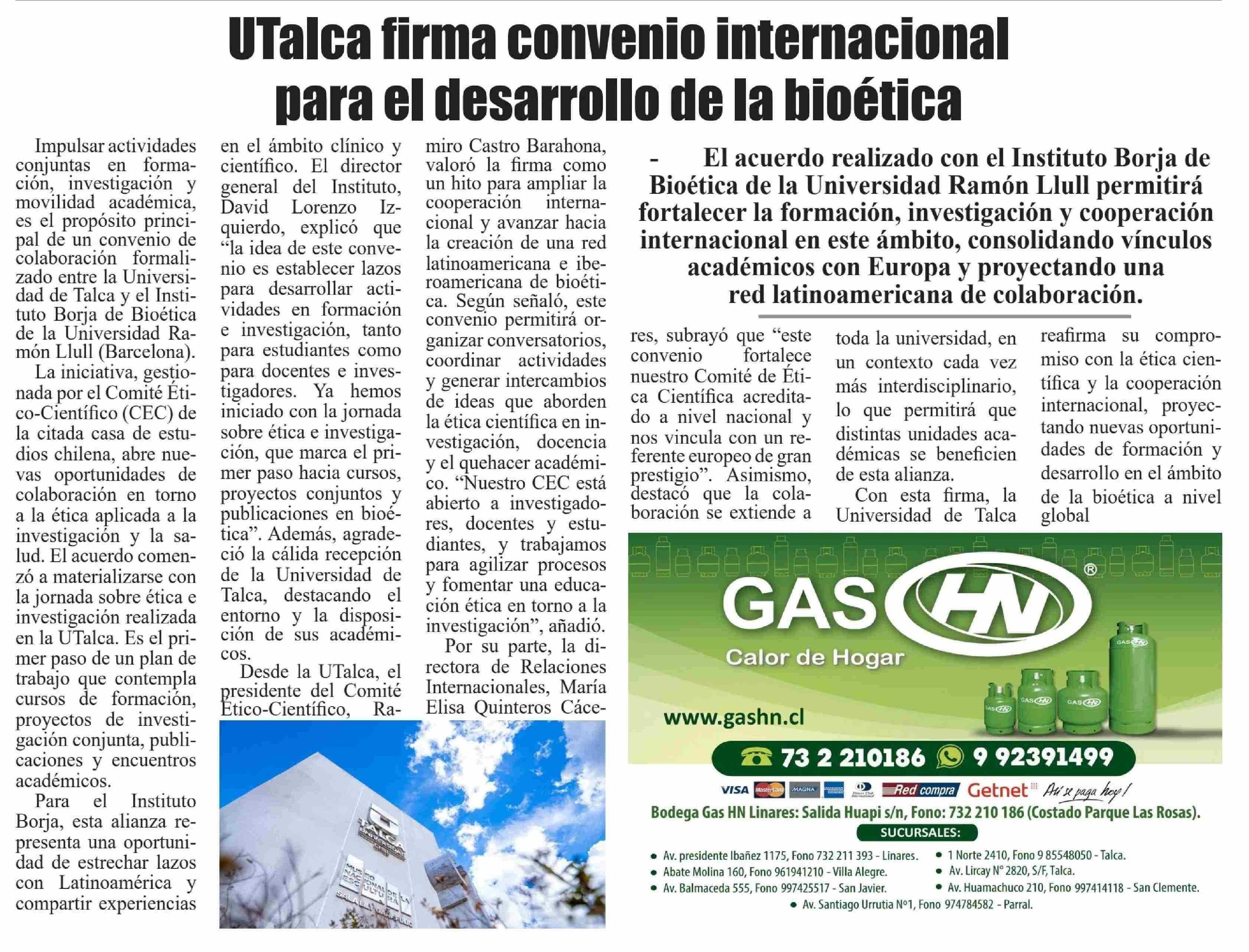 UTalca firma convenio internacional para el desarrollo de la bioética