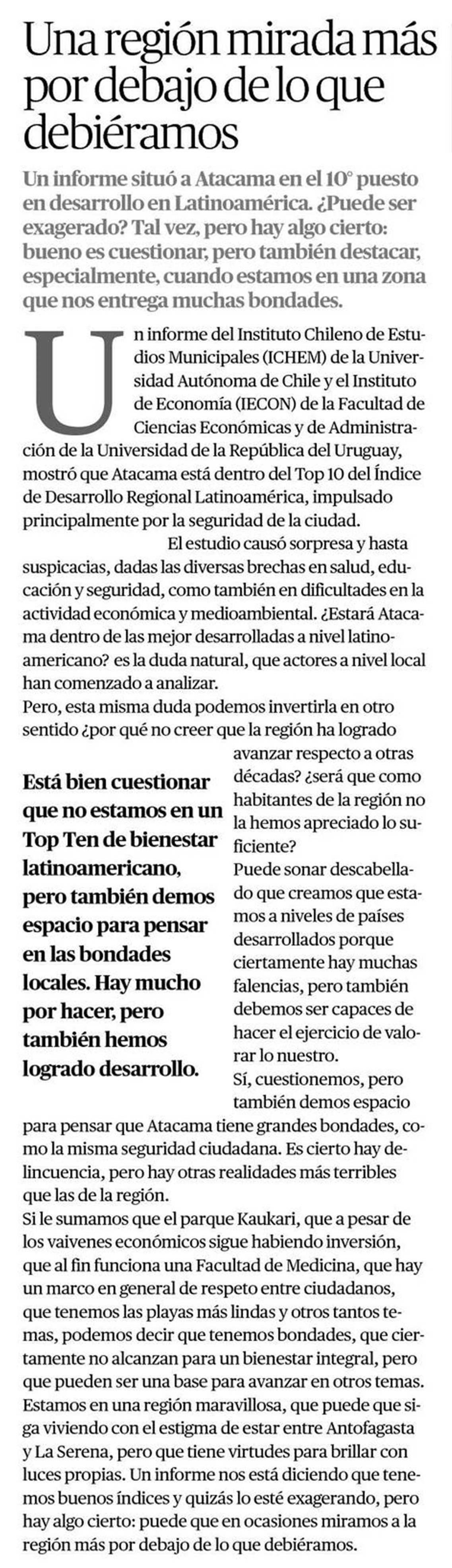 Una región mirada más por debajo de lo que debiéramos