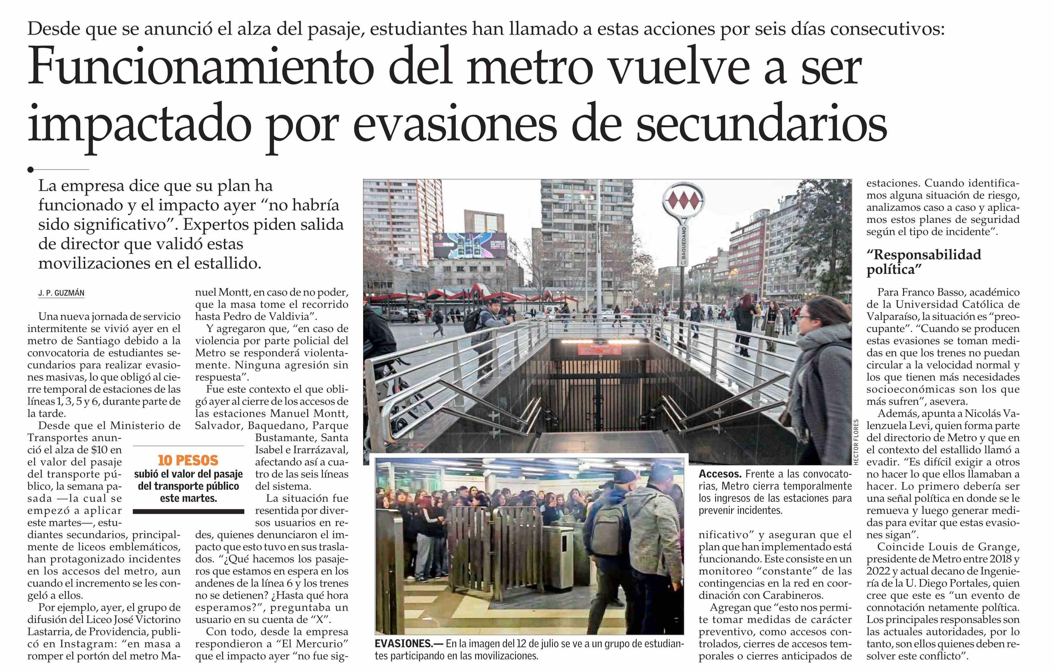 Funcionamiento del metro vuelve a ser impactado por evasiones de secundarios