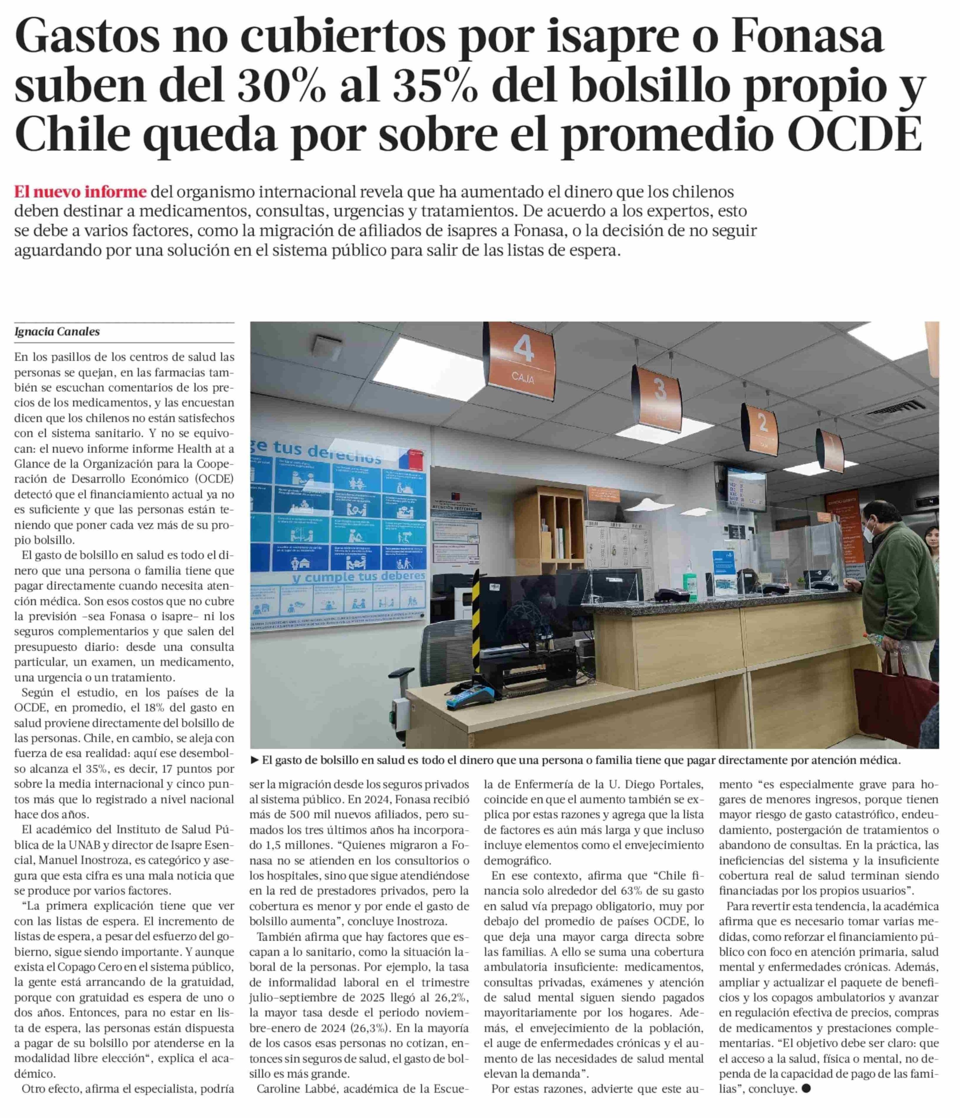 Gastos no cubiertos por isapre o Fonasa suben del 30% al 35% del bolsillo propio y Chile queda por sobre el promedio OCDE