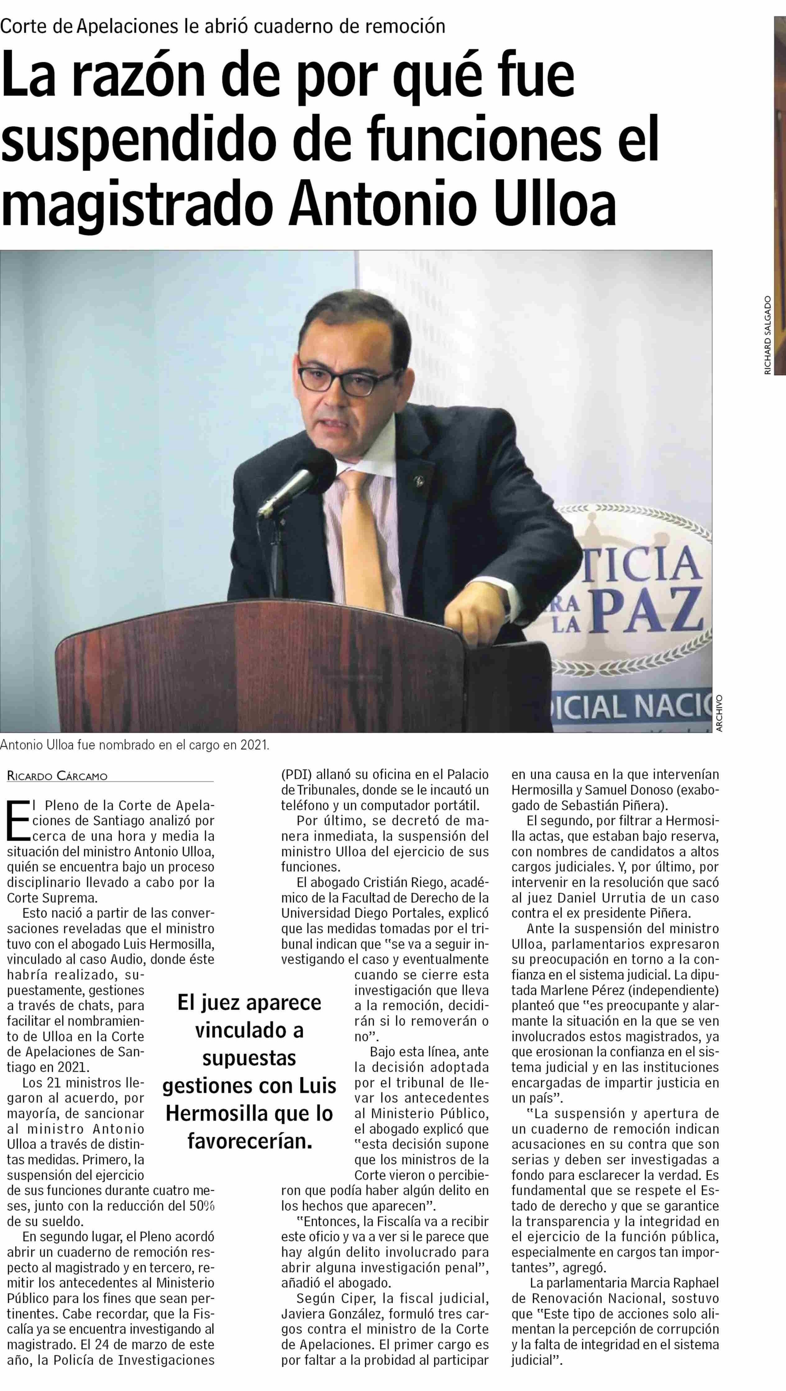 La razón de por qué fue suspendido de funciones el magistrado Antonio Ulloa