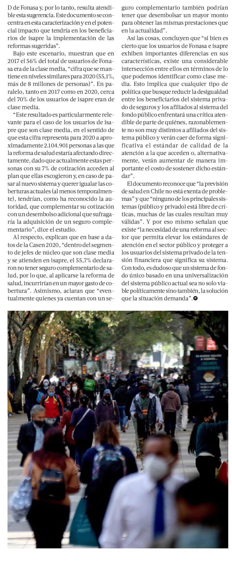 Estudio: más de la mitad de los jefes de núcleos familiares de clase media que están en isapres incurrirían en mayor gasto de cobertura con reforma de salud