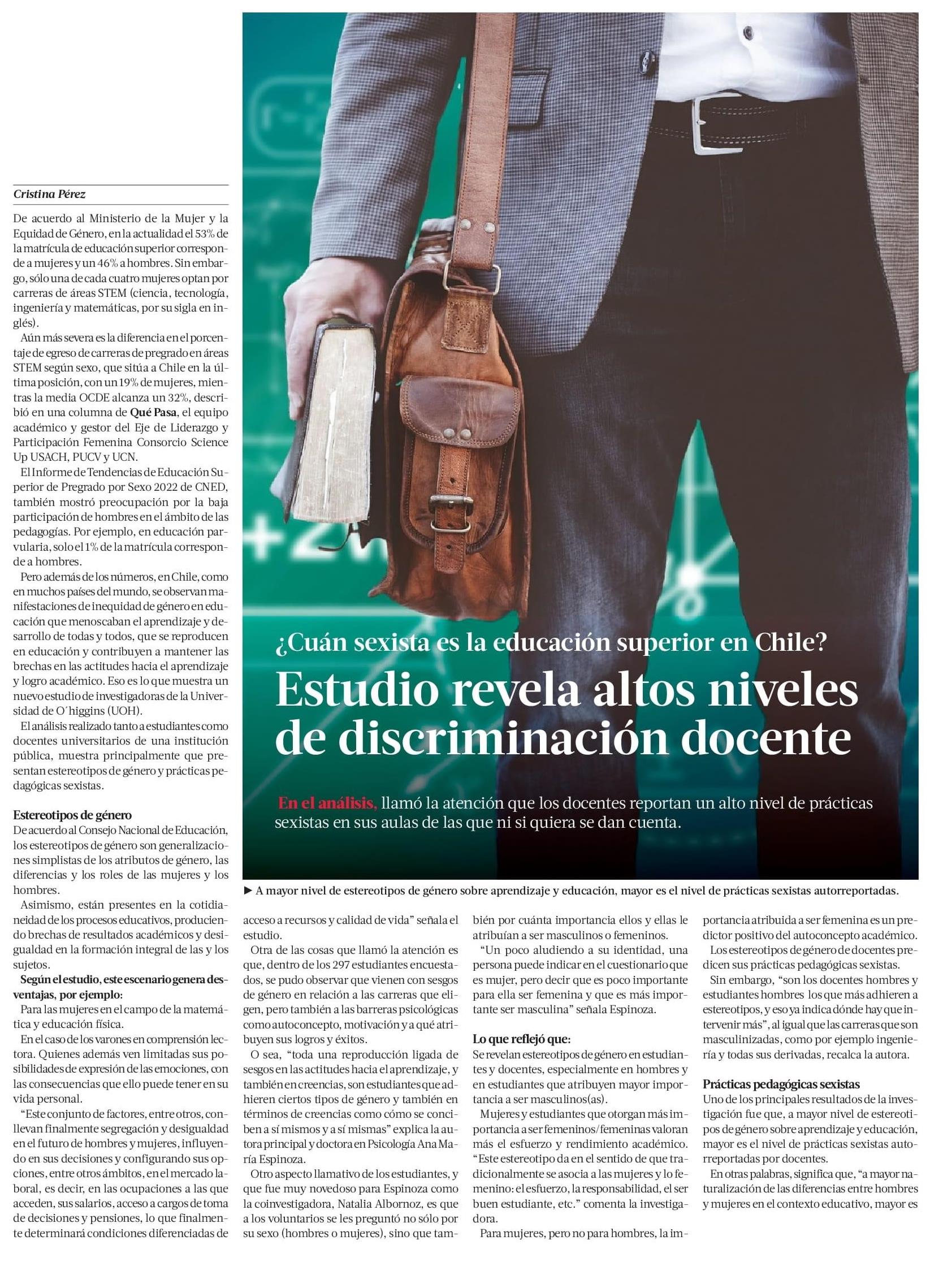 ¿Cuán sexista es la educación superior en Chile? Estudio revela altos niveles de discriminación docente