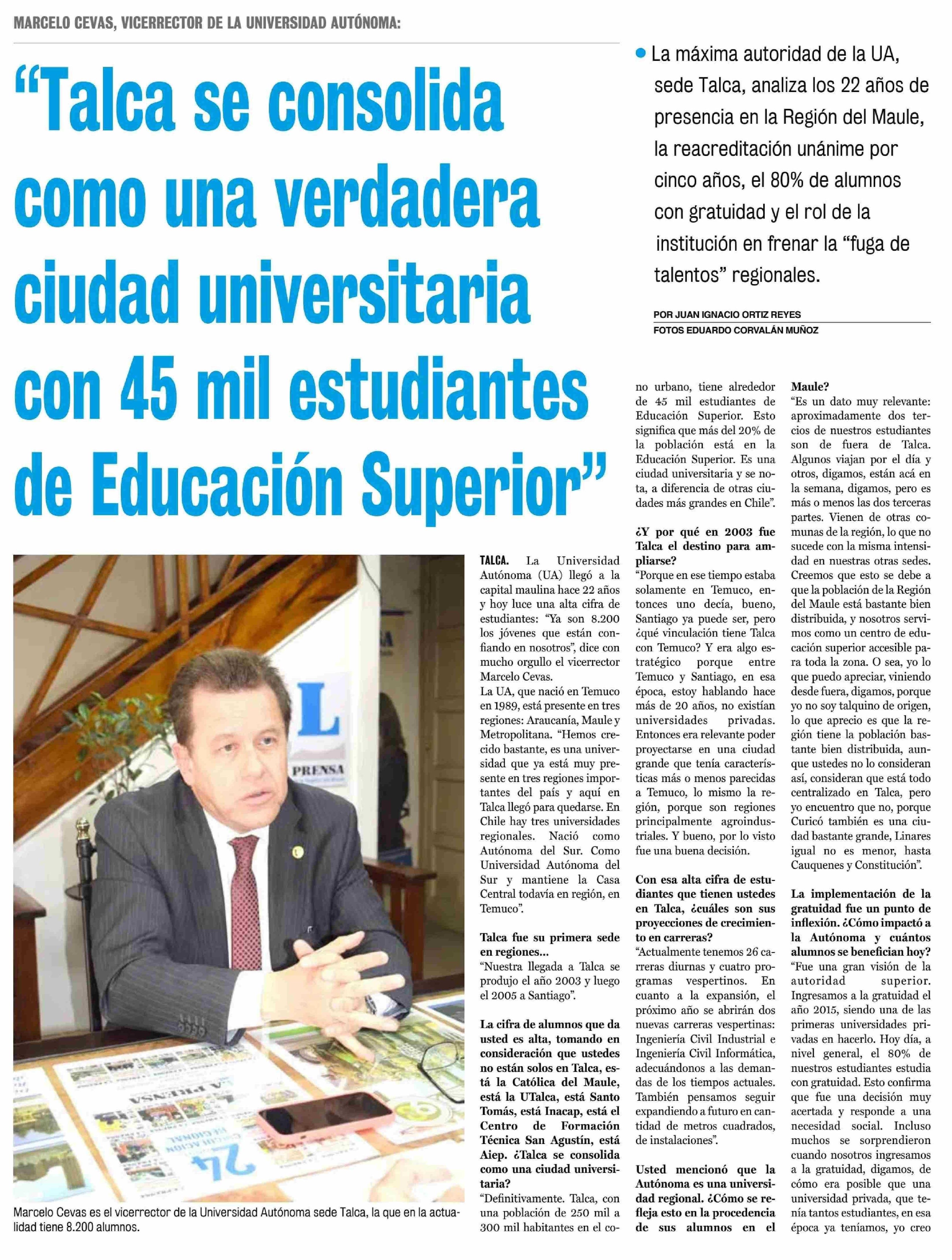 "Talca se consolida como una verdadera ciudad universitaria con 45 mil estudiantes de Educación Superior"