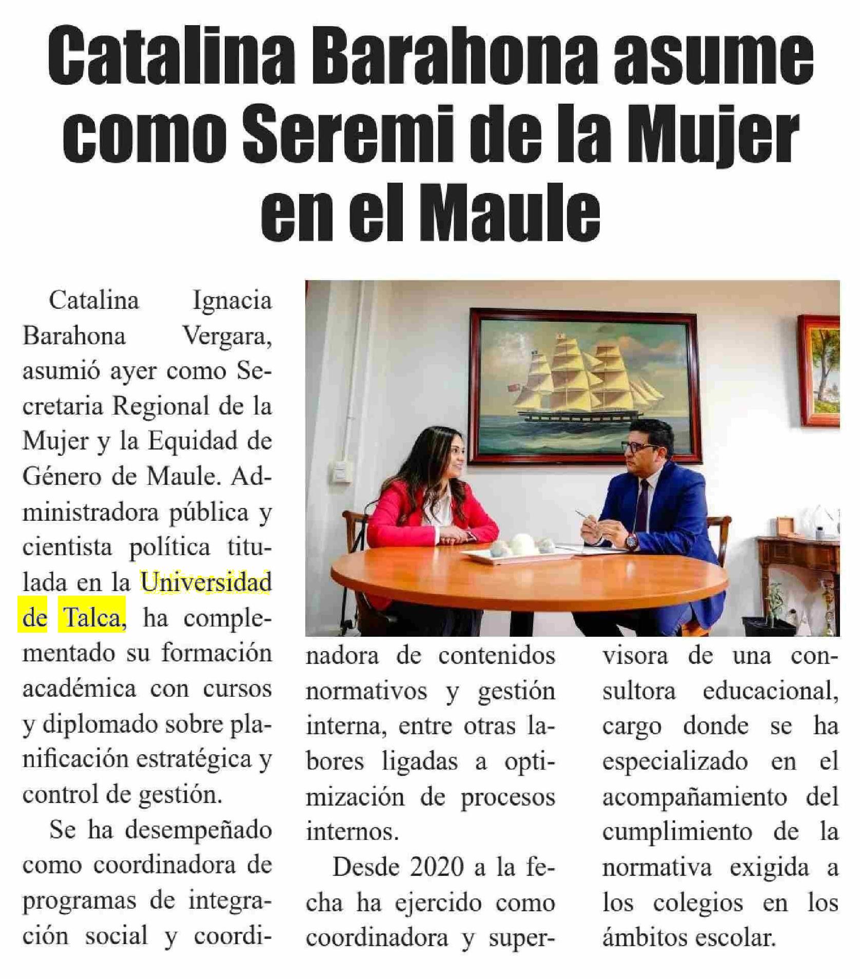 Catalina Barahona asume como Seremi de la Mujer en el Maule