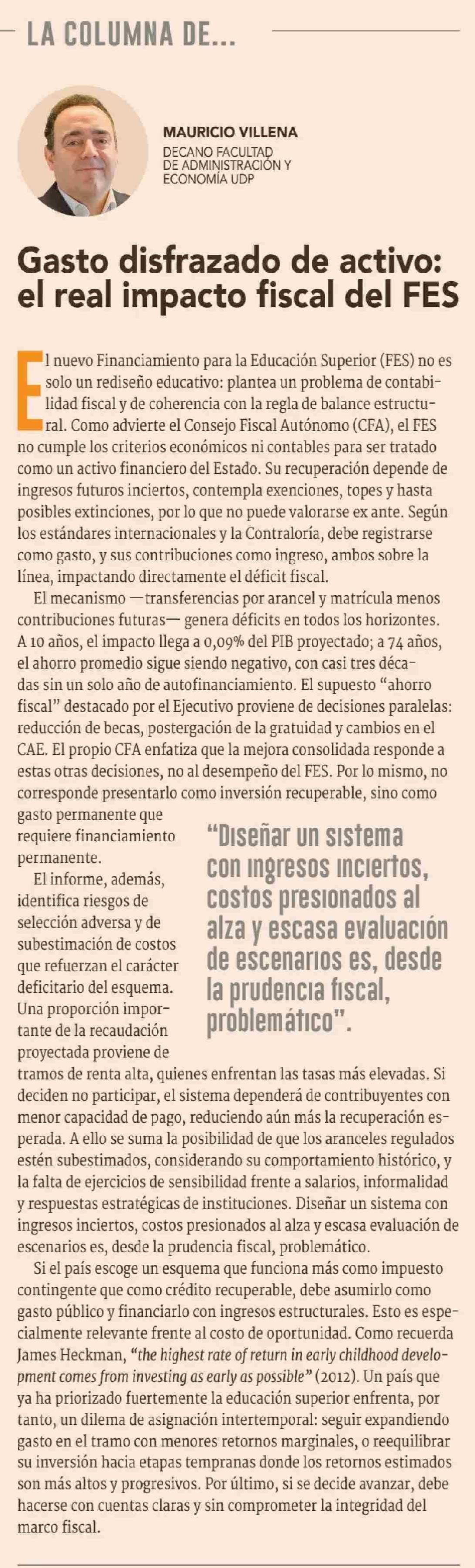 Columnas de Opinión: Gasto disfrazado de activo: el real impacto fiscal del FES