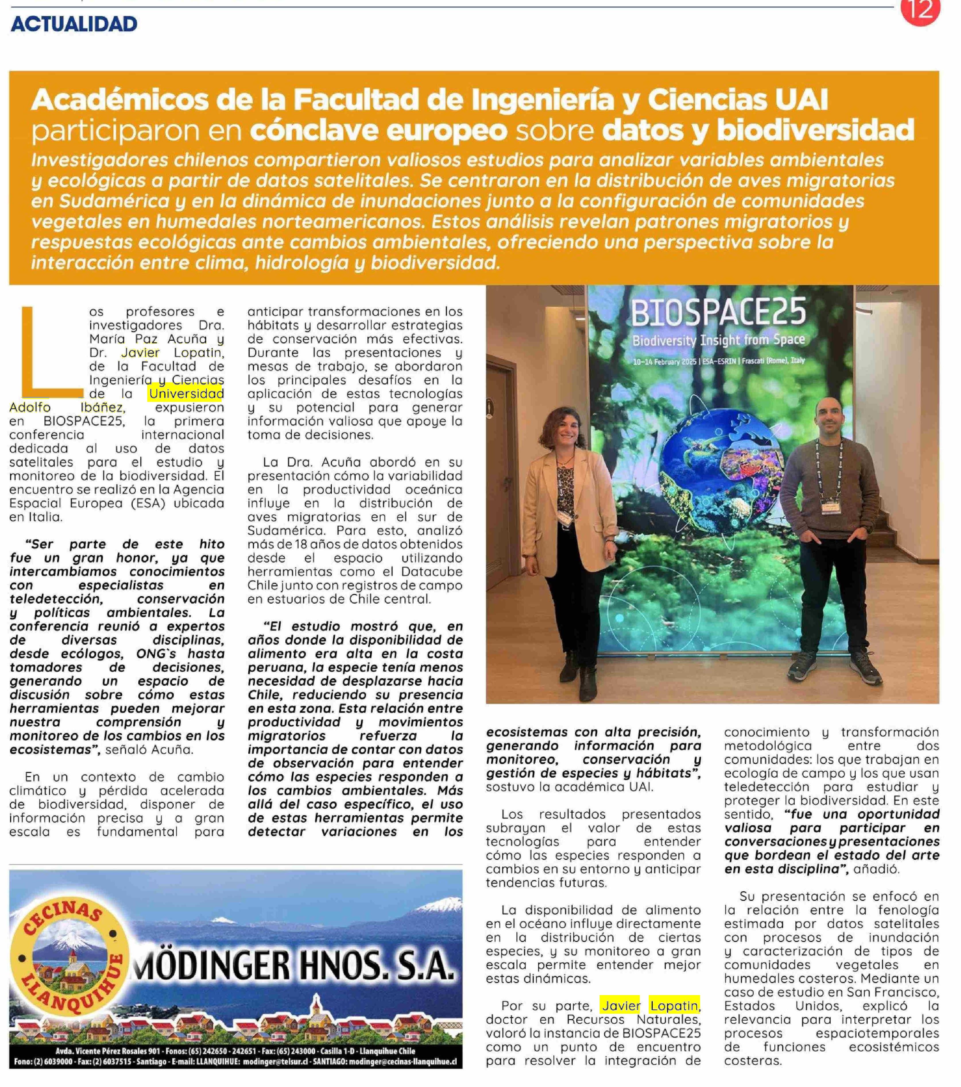 Académicos de la facultad de ingeniería y ciencais UAI participaron en cónclave europeo sobre datos y biodiversidad