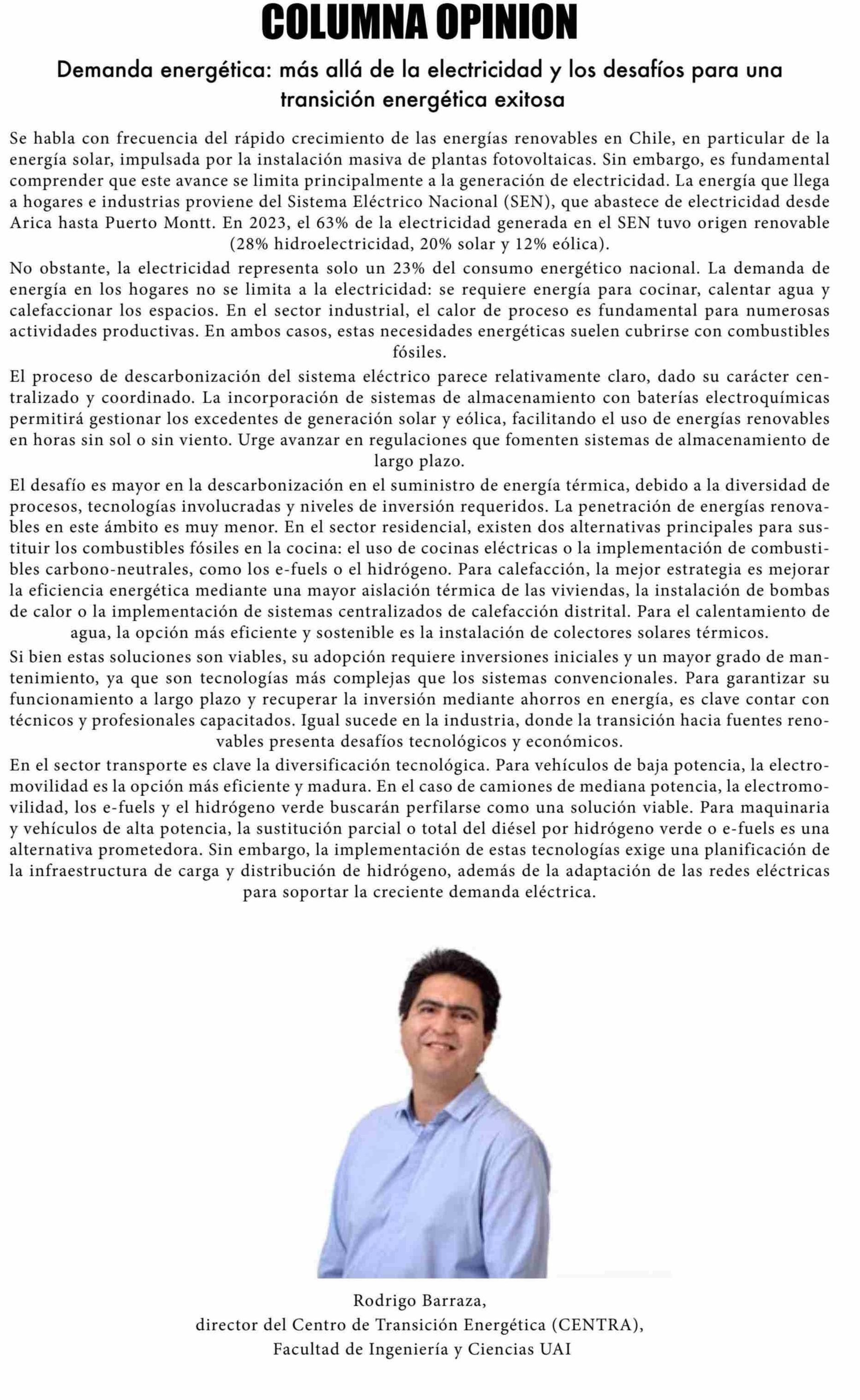 COLUMNAS DE OPINIÓN: Demanda energética: más allá de la electricidad y los desafíos para una transición energética exitosa