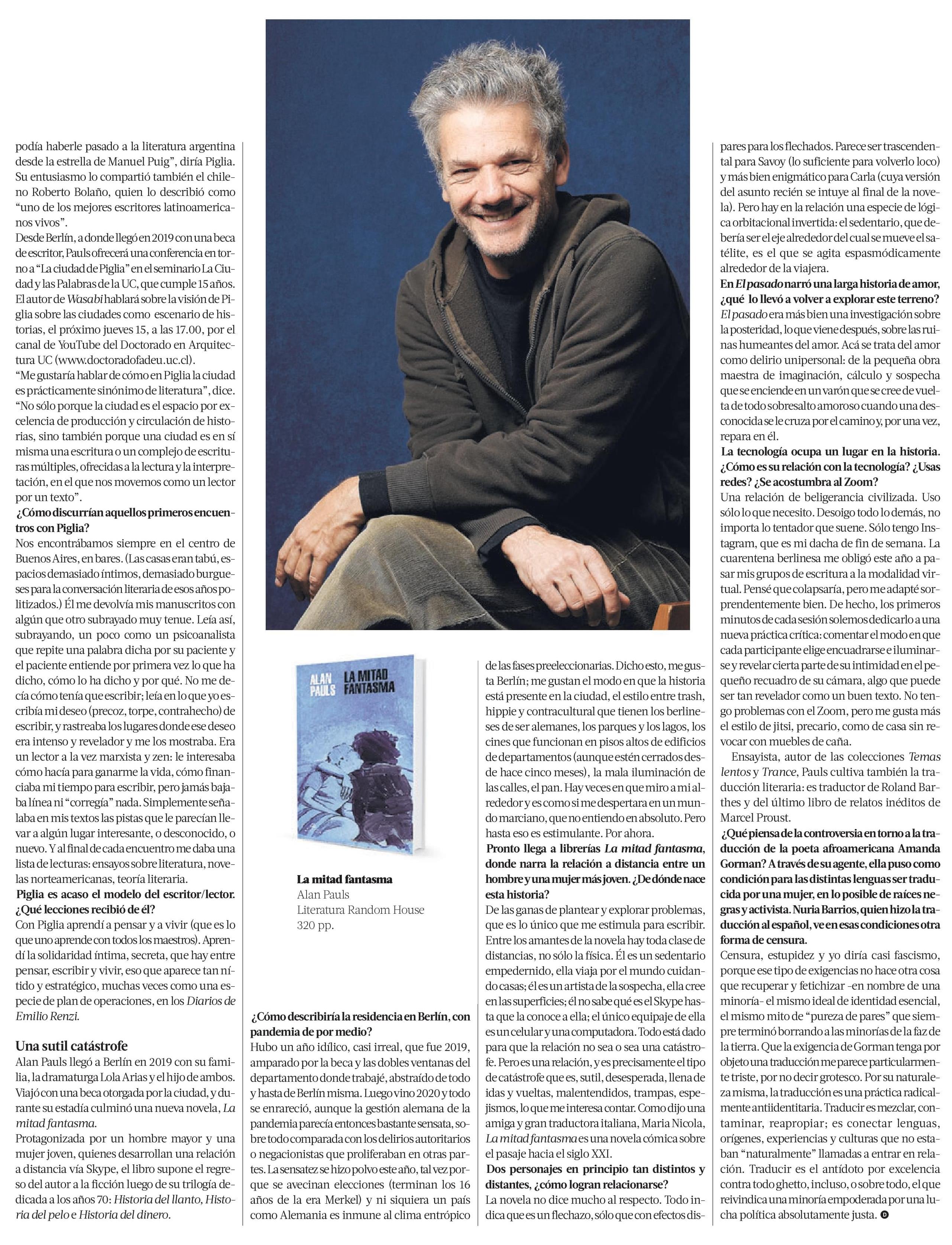 ALAN PAULS “La Mitad Fantasma es una novela cómica sobre el paso hacia el siglo XXI"