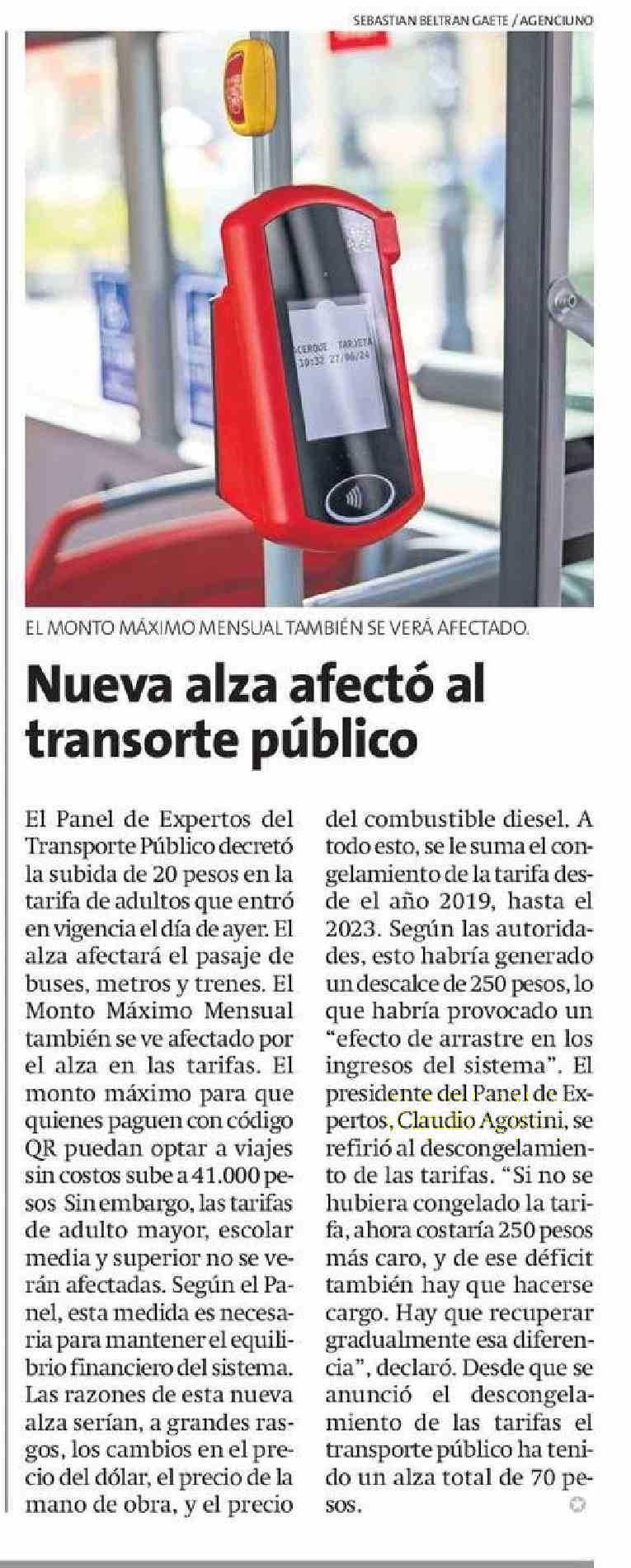 Nueva alza afectó al transorte público